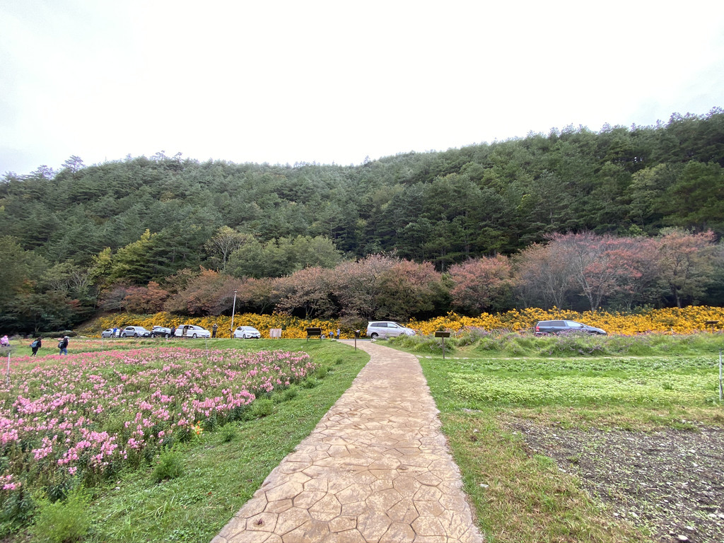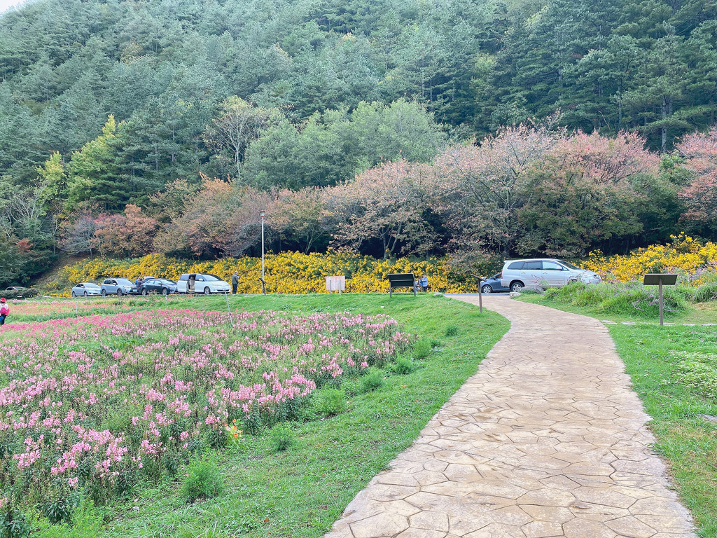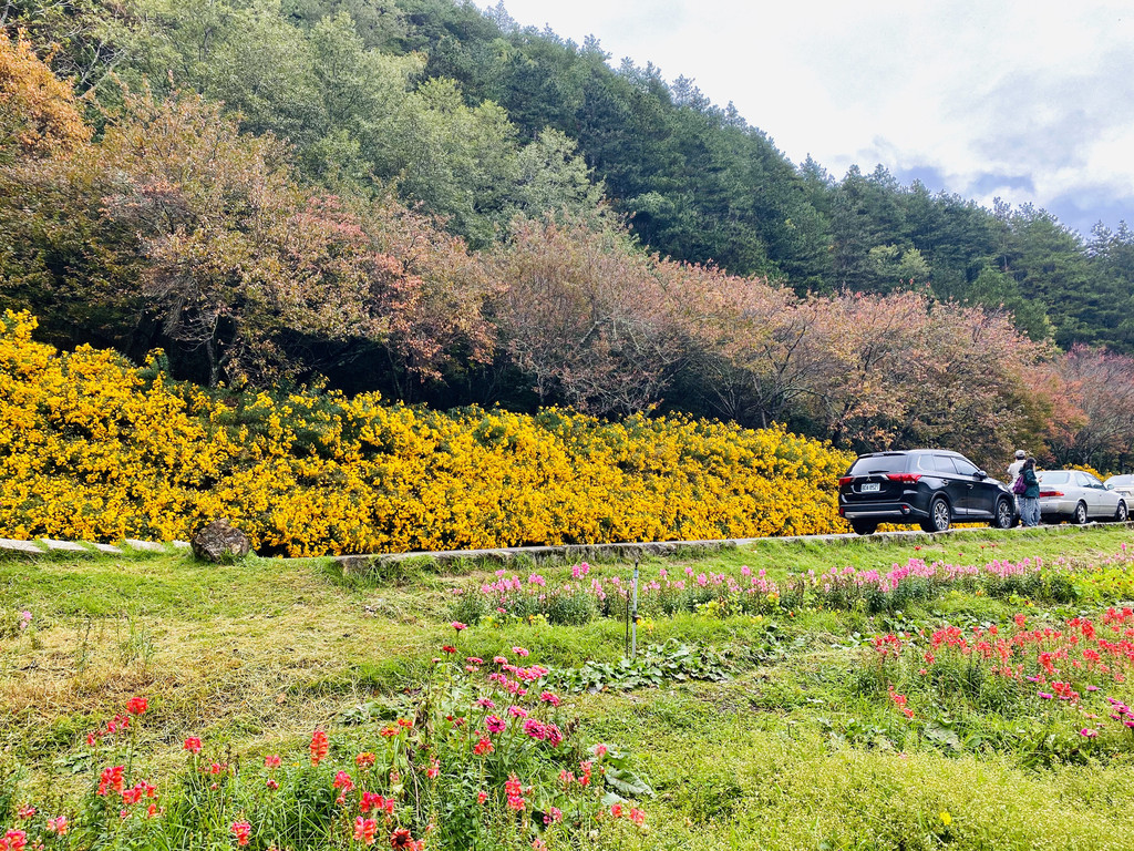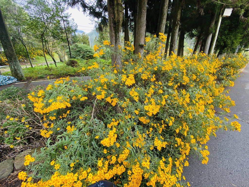 除了在入口花園處的路旁可以看到一整片的芳香萬壽菊的花海,在遊客中心前也有一片萬壽菊花海。