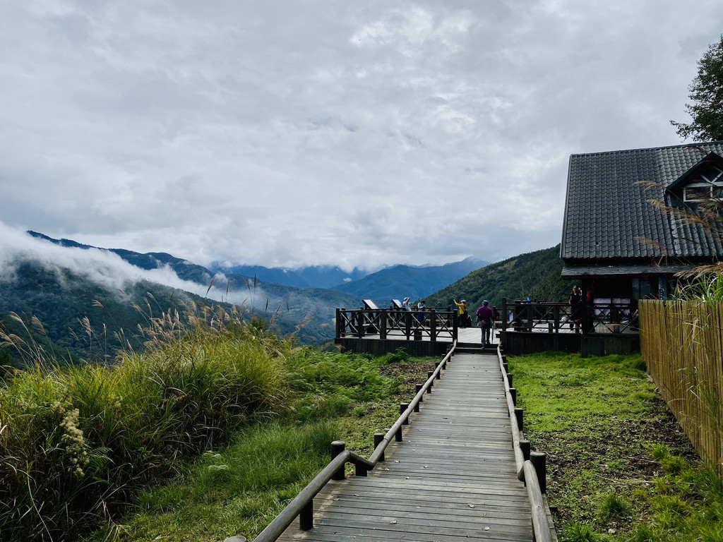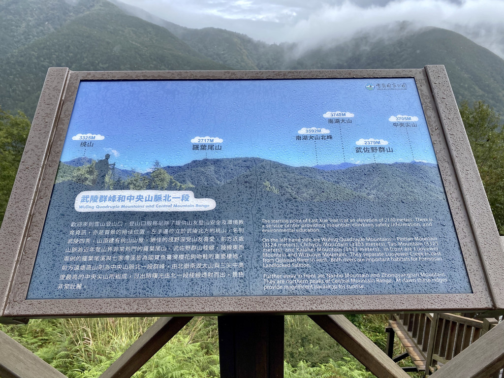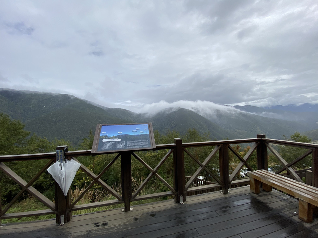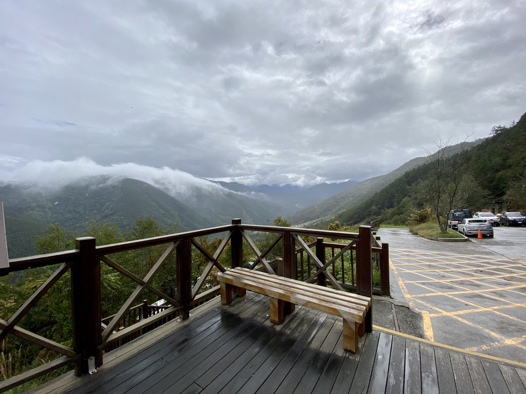所謂的雪山登山口就是來到雪山登山口的服務站,它是前往雪山線的出入口。服務站前的木棧平台視野開闊,可以看到七家灣溪的河谷、羅葉尾山稜線,天氣好能見度佳的時候,還可以眺望到南湖大山、中央尖山等。