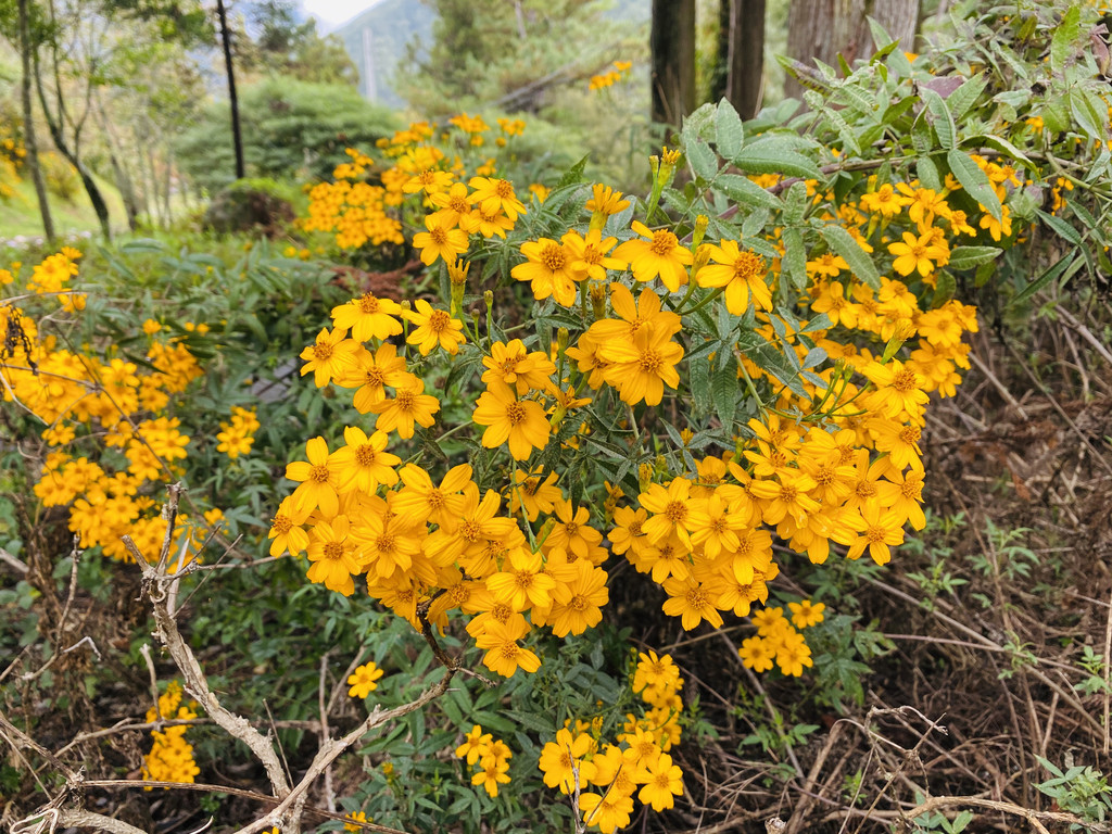 這些芳香萬壽菊是多年生菊科植物,喜歡全日照的環境,全株散發著特殊的果香,滿滿獨特百香果香及清新香草味。受惠於武陵農場秋季早晚高達10多度的日夜溫差及充沛的陽光,芳香萬壽菊綿延整片整排花牆可高大約150公分,花色飽滿亮麗,取景更是亮眼,是武陵農場秋冬季節專屬限時、限地的的隱藏版私房景點,所以千萬不要錯過。