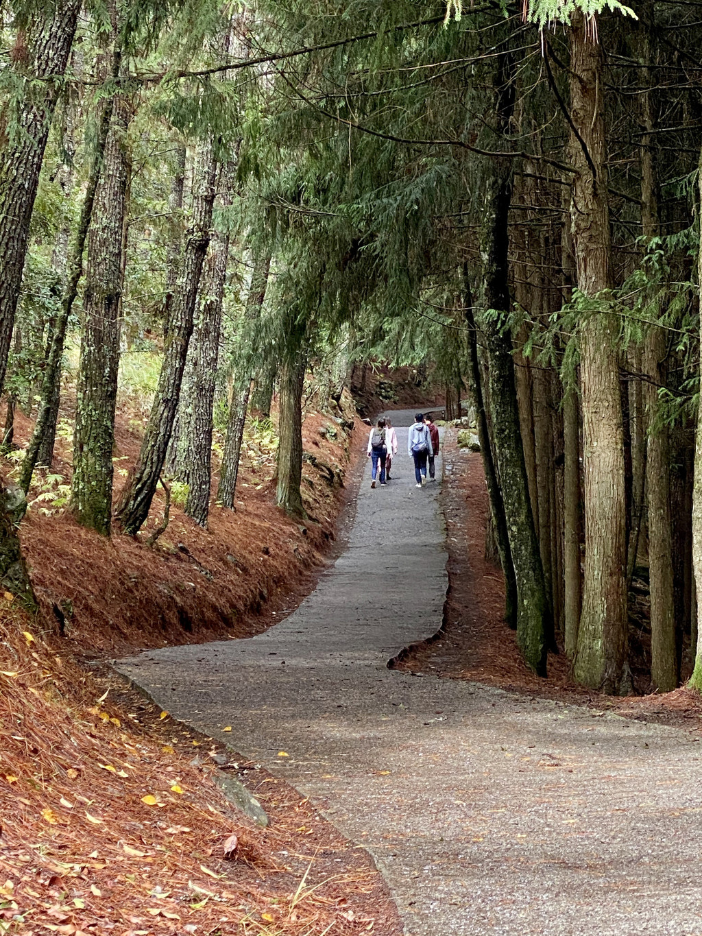 我們是走南谷園區步行道,這一段步行是可以參加導覽,行程為: 武陵國民賓館→迎賓館→賞鳥步道→松林大道→蔣公行館→櫻花釣吻鮭生態中心→武陵茶莊→回程,全程二小時,免費導覽全部步行,上午8:30及下午14:30各一場,在國民賓館前集合。