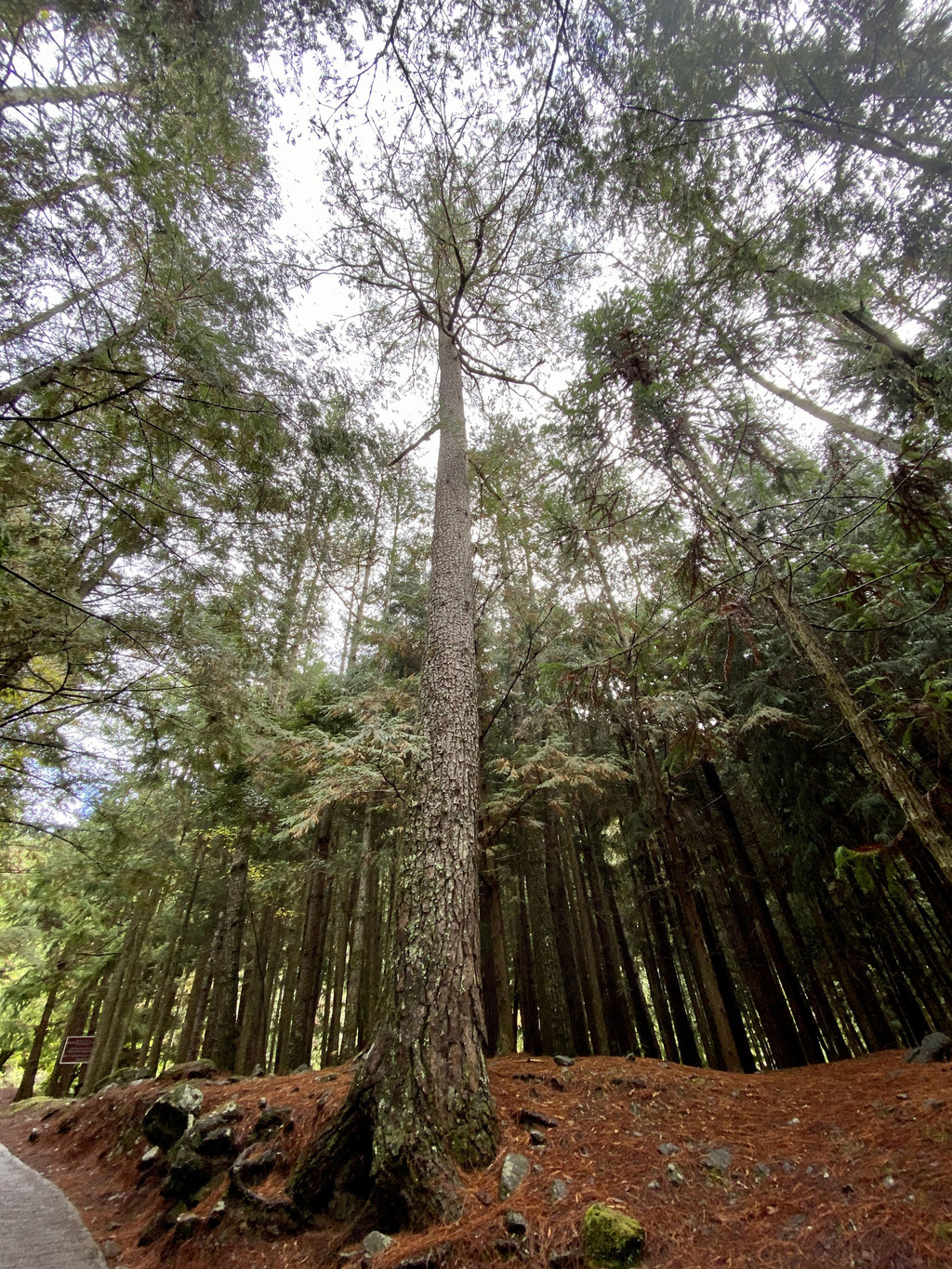 再過去穿越一條柳杉步道,高大的柳衫,高聳入雲天,宛如在森林中散步的感覺。除了視覺上的享受,還可以吸收柳杉散發出來的芬多精。