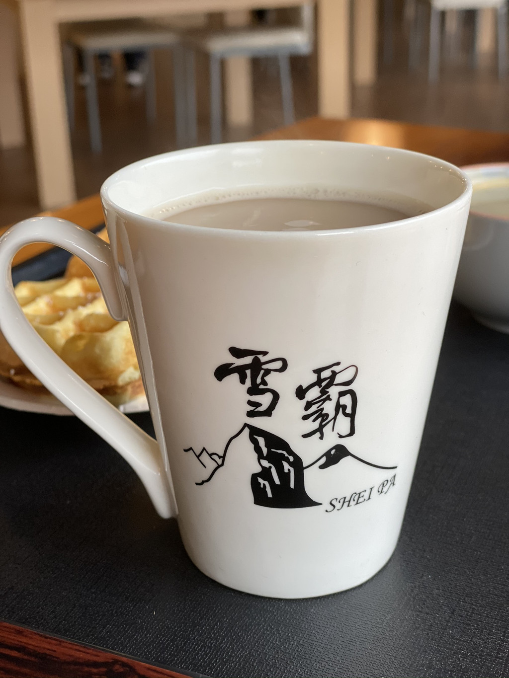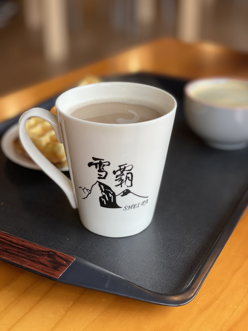 因肚子有點餓了,午餐還沒吃呢,所以就先逛去雪霸國家公園遊客中心去覓食,在這武陵農場園區內沒有7-11或全家便利超商,能買到食物的也只有在遊客中心有一個小小的商店,有賣零食、飲料、泡麵的,還有一些熱食。遊客中心的二樓也有餐廳,可以點一些微波的主餐,也有鬆餅的下午茶,在這冷冷的下雨天,來杯暖暖的熱奶茶、熱咖啡,溫暖在心裏的感覺真是太美好了。