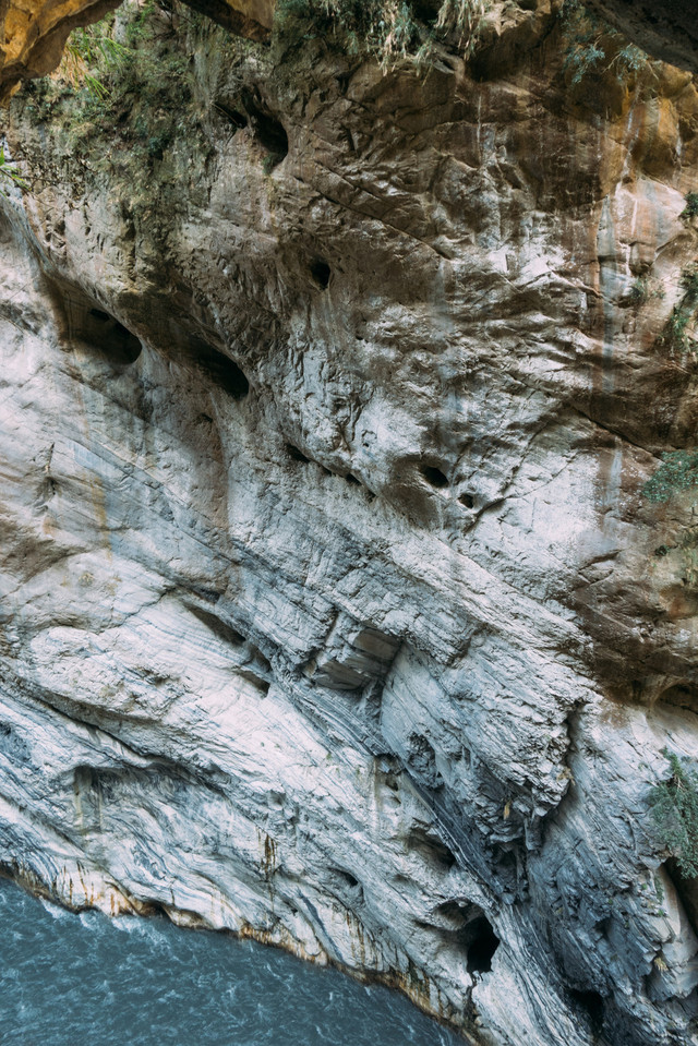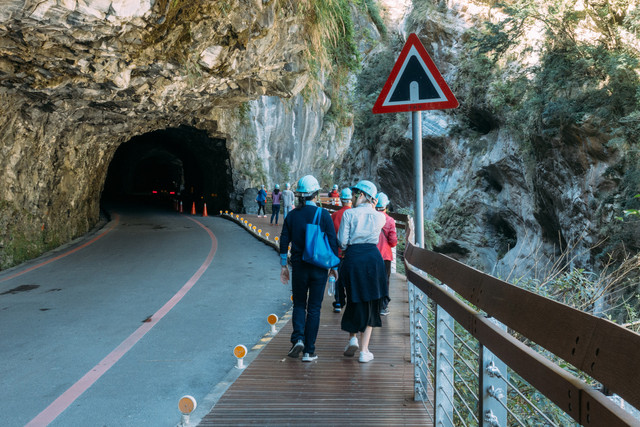 发电古道非常无聊。燕子口略有趣味,每人发一个头盔,自己走进隧道去看洞洞奇观,笔直高耸的悬崖峭壁上有着大小不一的坑洞,燕子恐怕是没这能耐,大自然的鬼斧神工也不是人类可以轻易琢磨透的。