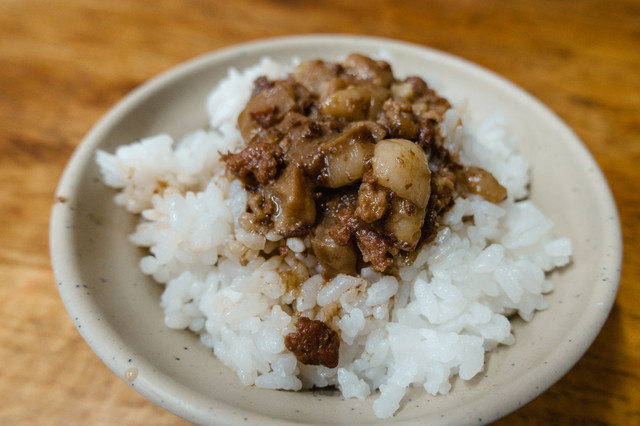 年关将近,很多店铺已经放假关门了。终于找到一家还开的小食摊,点了份卤肉饭坐下。接着我就震惊了,原来正宗的台湾卤肉饭是这个分量(大概正常饭量的三分之一)。