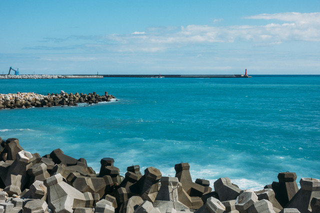 清水断崖是清水山在海岸线附近的断崖,由于地壳运动,它呈90度角直插入海中,蔚蓝色的太平洋和黑色的沙滩构成巨大的反差。