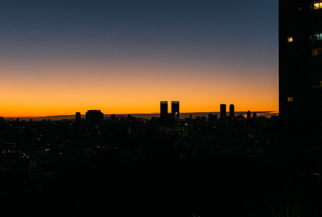 划重点,很多朋友去城市观景台,例如广州的小蛮腰、东京的六本木和纽约的帝国大厦,喜欢晚上去看夜景。但对于摄影师来说,黄昏到入夜这个时间段才是拍摄城市风光的最佳时间,运气好可以碰上火烧云,看一场壮观的城市日落;而太阳落下到天空全黑之间一般还有半小时,这就是黄金时段,我们称为blue hour。这时候只要没有大气污染,华灯初上与天空的最后一抹蓝形成最美丽的对比,拍出来比天黑后的夜景要美上10倍不止。