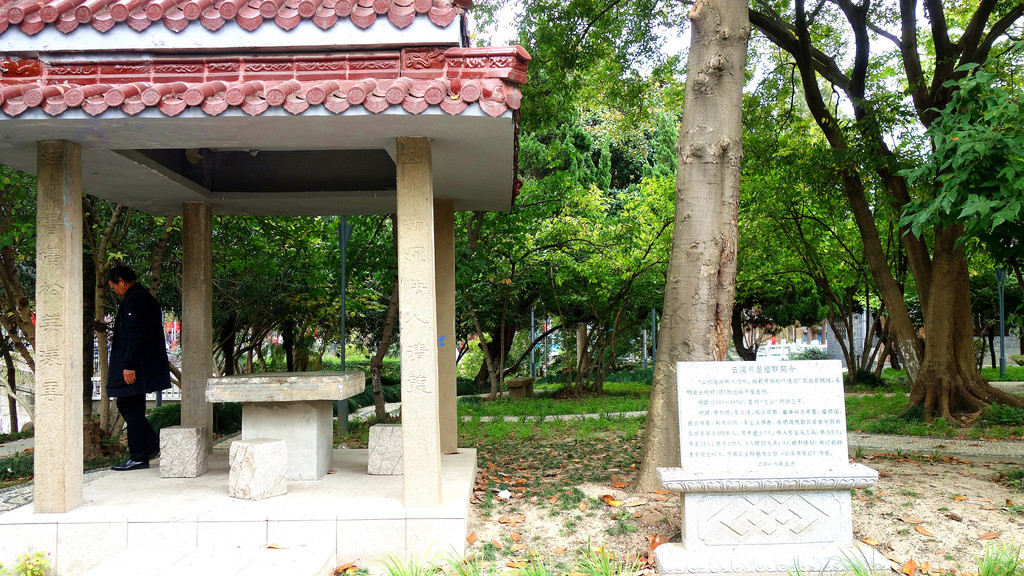 公园不大,九曲桥的那一头封闭,只能原路返回。回到公园东侧一处亭子,亭子模样很普通,看了亭边的石碑才知道,这不是普普通通的亭子。这里是明朝年间当地名人何额(1404-1456)读书之处,名曰云溪书屋,果然面临西溪,傍云结屋。在亭下问一位当地的人,我们想去古镇怎么走?他很诧异,告诉我们这就是古镇啊!听完我们的解释他告诉我们出公园走不远就是了。我们就是想找一条古街巷转转,寻找古镇真正的味道。