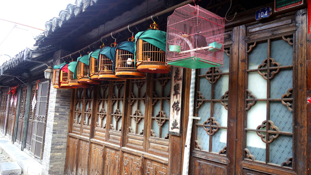 屋檐下一字排开的鸟笼,鸟儿齐声欢唱,此起彼幅的好不热闹。