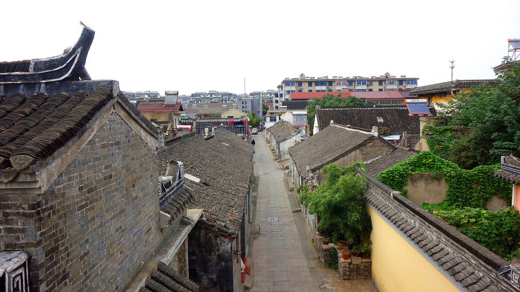 走到珠巷的尽头,就是十桥中路上,一条现代街道。小镇不算繁华,在这里可以看到两种风格的房子,一边是古代风格的民居,一边则是几层楼的现代小区。路口很热闹,可以看到黄桥的各种小吃。小吃有店铺经营的,也有小摊经营的,但都很热闹。马路的对面是王家巷,风格与珠巷相似,石板铺地,青砖黛瓦,风格很朴素。看来古镇上的明清时代的旧建筑不止珠巷一条街吧!其实有时间的话,可以再找几条巷子走一走,转一转。