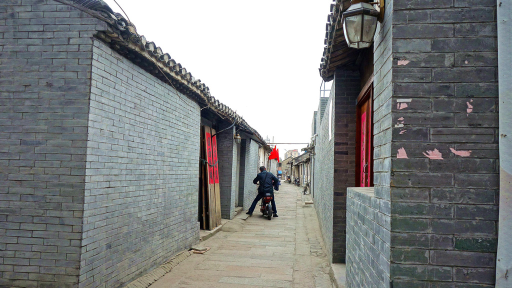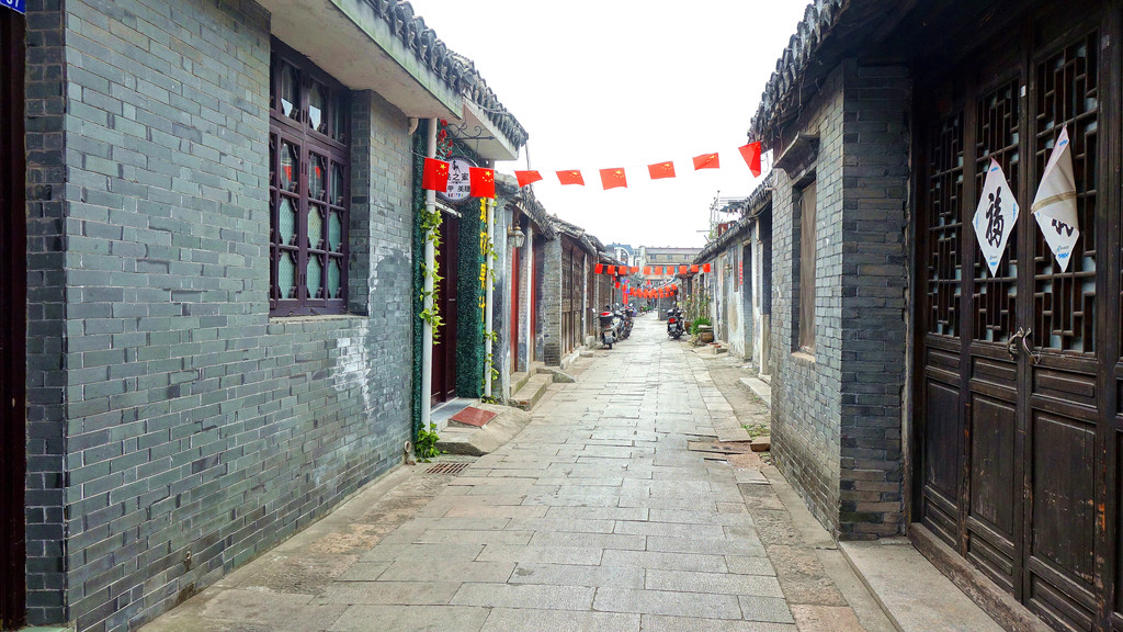 肃穆的街巷,要不是红色国旗飘荡在巷中,就是一副淡雅的水墨画。