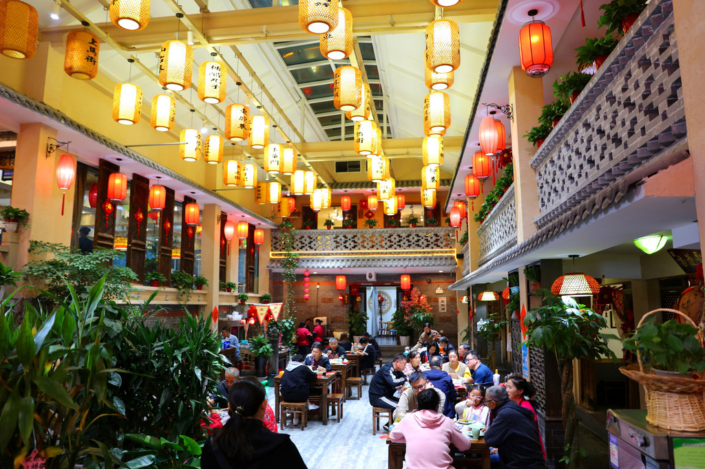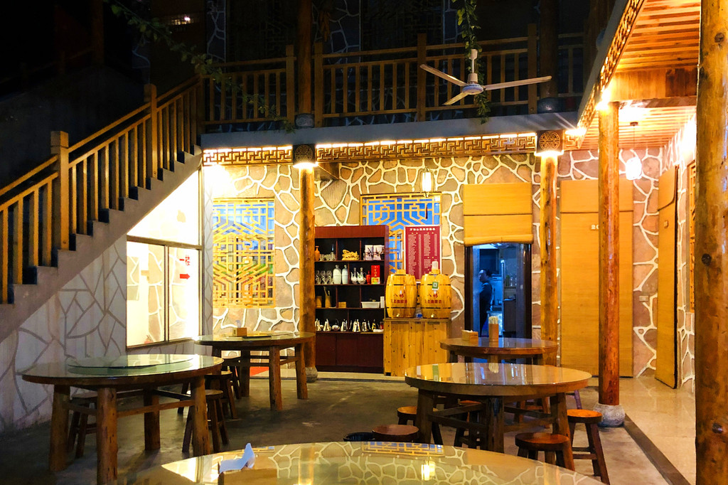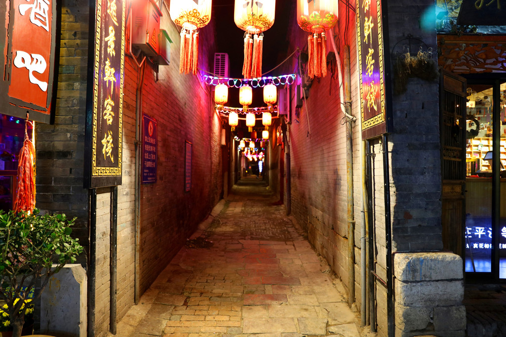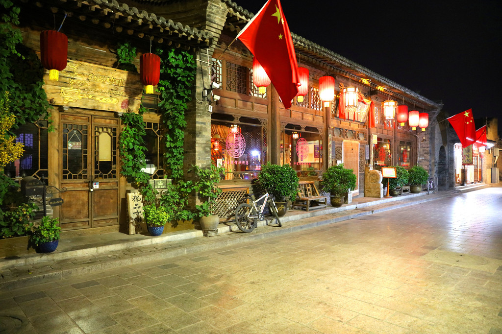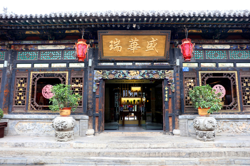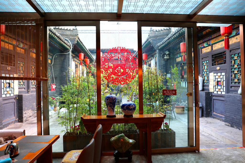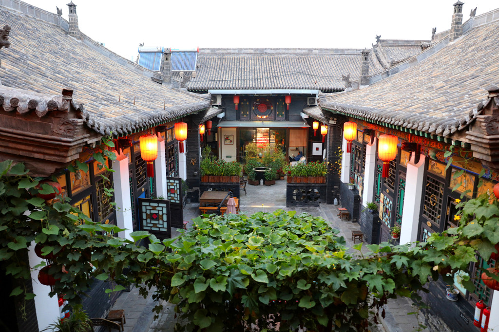 日落时分我们来到平遥古城,先把车停放在古城西门外的停车场,然后从西边的凤仪门步行进入古城前往位于西大街的花筑兴隆义客栈,这是我第二次来平遥,上一次已是二十多年前了,当时平遥古城申报世界文化遗产获得成功不久,古城内好多设施还不尽人意,但看过平遥古城后这里确实是全国保存最为完整的一座古代县城。我们沿西大街一路向东,现在古城的核心区域已变成步行街,任何车辆已不得入内,在目睹了一场古城炫彩落日余辉后我们来到了一幢古色古香明清风格的老院子,这就是我们今晚入住的花筑兴隆义客栈,客栈是一幢平遥特色的四合院民居,类似这样年代久远的民居建筑,在平遥古城内至今保存有3700余处,兴隆义客栈分为一进院、二进院、三进院。二进院为小花园、三进院是客房,客栈与四周的建筑很协调,装修采用复古的手法,特别彰显古建筑的雕梁画栋,青砖绿瓦、庭院幽静的优美环境,让人有种住在深宅大院里的感觉,而客栈的小花园简直就是一个绿色的海洋,青藤树蔓,溪水潺潺,绿植盆栽,鸟语花香。在客房中稍作整理后赶紧出门找吃的,出客栈门右转,紧邻隔壁一正在围档修缮的门面,仔细一看突然发现这就是我二十多年前曾入内参观过的“日昇昌”,当年晋商最厉害之处就是开创了票号,也就是现代银行的雏形,东家只出钱,掌柜做管理,而这“日升昌”,则是中国最早的票号。