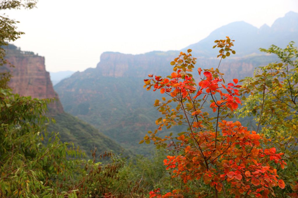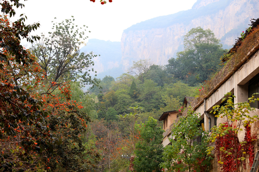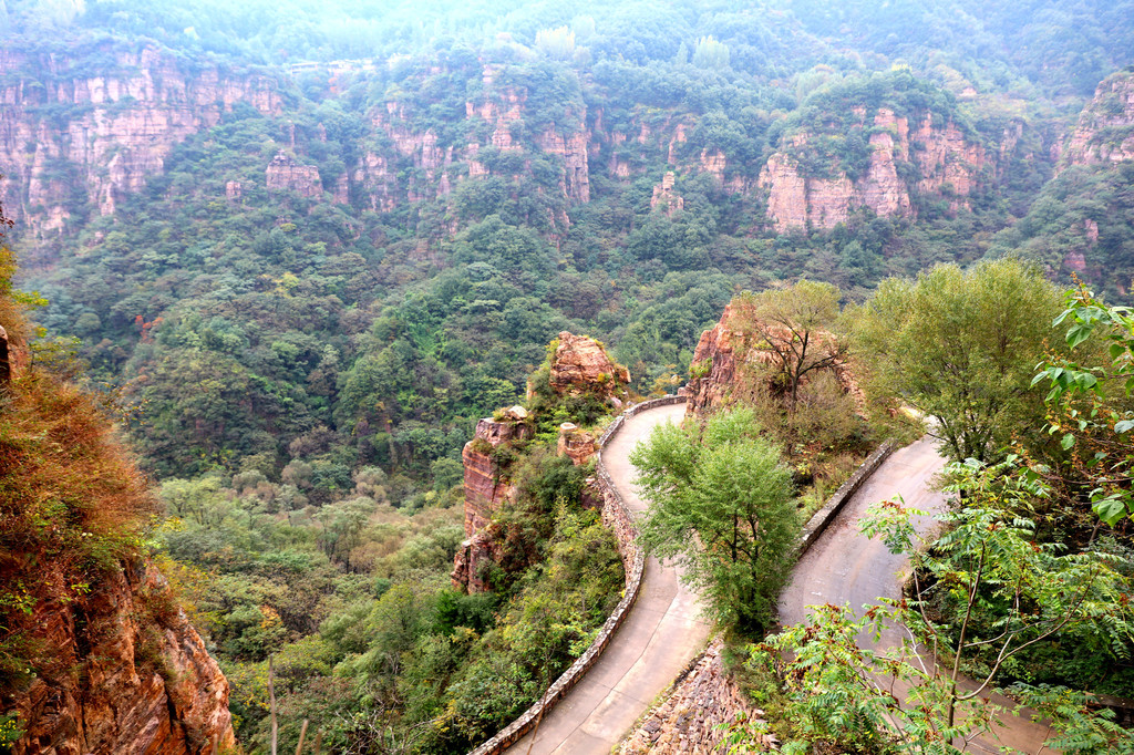 万仙山风景区的游客服务中心位于南坪村,整个景区包含郭亮村,郭亮挂壁公路、南坪、罗姐寨等构成,最有看点的就是郭亮挂壁公路,这条1250米的绝壁长廊完全是靠人工花了五年时间开凿而成,因为这里路窄险峻,每天早上八点后禁止外来车辆驶入,我们赶在八点前经挂壁公路驶入郭亮村,看着这险峻幽深的挂壁公路,感叹当年开凿者的勇气,郭亮村不大,因为有了挂壁公路,打通了和外面的交通,现在成了影视拍摄与写生基地,村民们也靠旅游业摆脱了贫困,当然现在进村挂壁公路不是唯一的通道,另外又修了连通村外的路,但是是单行道,只能出不能进,而从这条路的一侧是观赏挂壁公路的最佳处。开着车离开郭亮村后我们在万仙山的沟沟峡峡、盘山公路中随意逛转、其实万仙山景区的秋色也相当不错,我们来早了大约一星期,彩叶还没变到最佳状态。