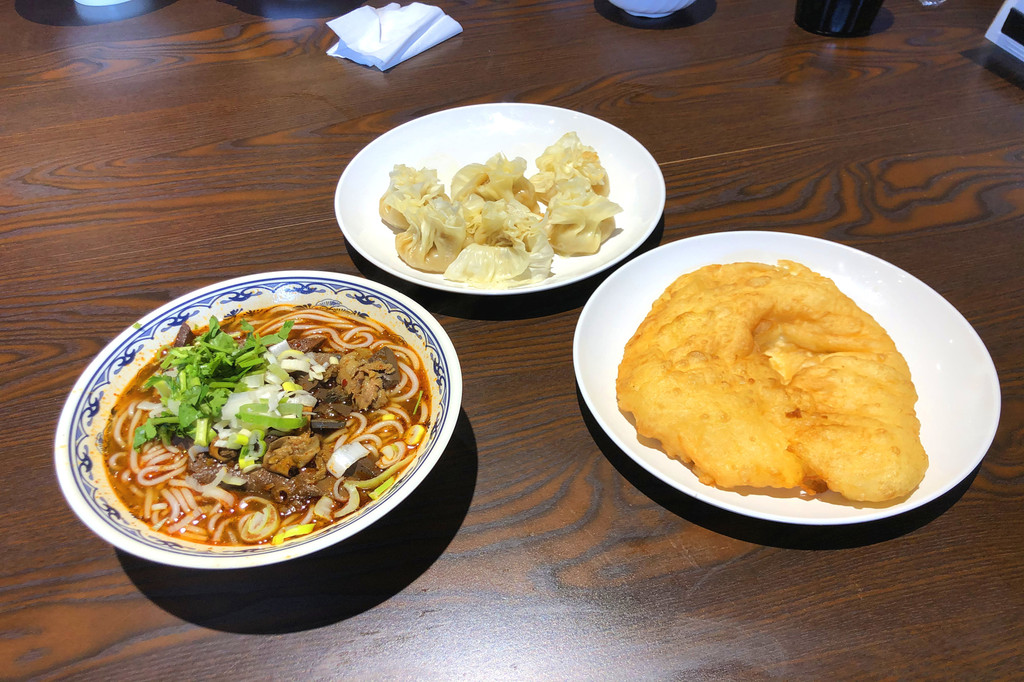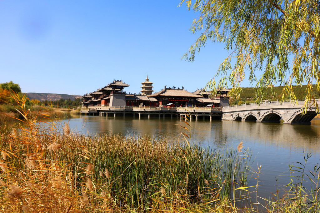 云冈陈列馆这里也是电瓶观光车的终点站,我们从这里乘车返回原点,因为今天下午我们还要赶到二百多公里外的五台山风景区,对于建在湖心岛上的灵岩寺只在入口的湖边远观一番后选择离开,门口有一条仿古商业街,有各种服务设施,因为已是中午时分,决定在这里吃午饭,大同其实有不少美食小吃,大同百花烧卖、羊杂汤都很著名,在仿古街的一家餐厅点了羊杂粉、烧麦、油饼,味道太一般了,在旅游景区门口吃饭本来就不是一个好选择,离开云冈石窟,我们也就匆匆地和大同告别了。