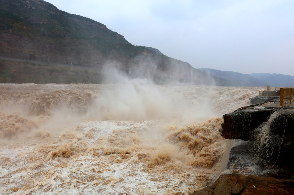 在饱览了山西古建筑、古民居后,行驶将近三百公里,来到位于山西、陕西交界处的黄河壶口镇看这个中国第二大瀑布-壶口瀑布,站在壶口瀑布前充分领略了风在吼、黄河在咆哮的磅礴气势,不过今年因为黄河流域水流大,虽然水势大了,但反而使瀑布的落差显得小了,而且还封闭了很多因涨水有安全隐患的地方,至于从山西方向还是陕西方向观瀑布观赏性更佳,应该是更有魅力吧!