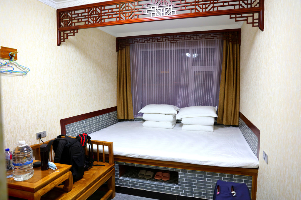 关于大同的住宿,真的有点莫名其妙,虽说大同云冈石窟比较出名,但大同应该也不算非常热门的旅游热点城市,但国庆假期大同市内古城附近,稍上点档次的宾馆七、八百元不稀奇,最后我们入住在大同火车站不远处的一家非常简陋的商务酒店,犄角旮旯的地方,将近四百元的房价,估计比平时溢价一倍还多,性价比很低。