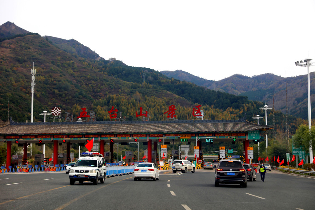 驱车直奔五台山风景区南入口,来之前因为被媒体报导后,怕因为国庆假期游客太多,五台山景区采取限流措施后买不到门票,而五台山风景区游客服务中心公众号又不能提前预定门票,焦虑中通过一家游行社预定了门票,但取票地点在五台山景区南入口处,我们把导航也设在了景区南入口,这番操作最后让我们多走了一百多公里路,因为我们预定入住处的客栈位于台怀镇靠北,而我们从大同过来其实是应该从五台山景区北入口进入,距离近,而且北入口游客量也少。