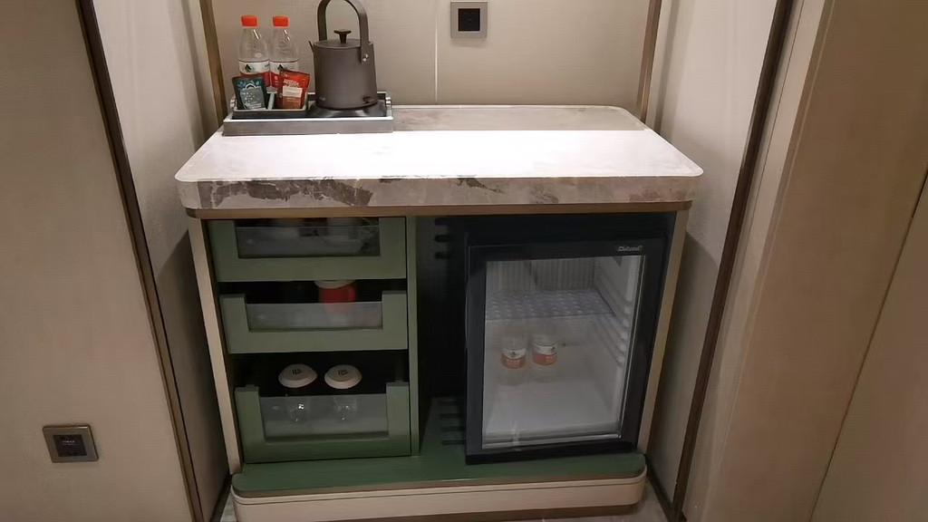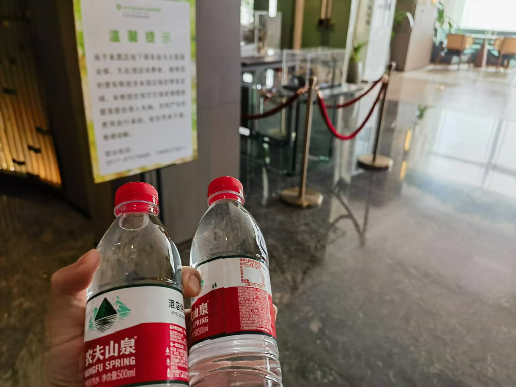 客房内有小冰箱,提供4瓶矿泉水。酒店前台还可以免费补充矿泉水。