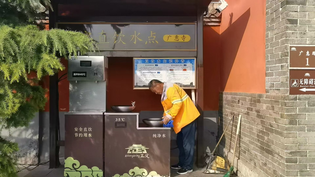 正定古城的旅游服务很人性化,景点前设有直饮水点。