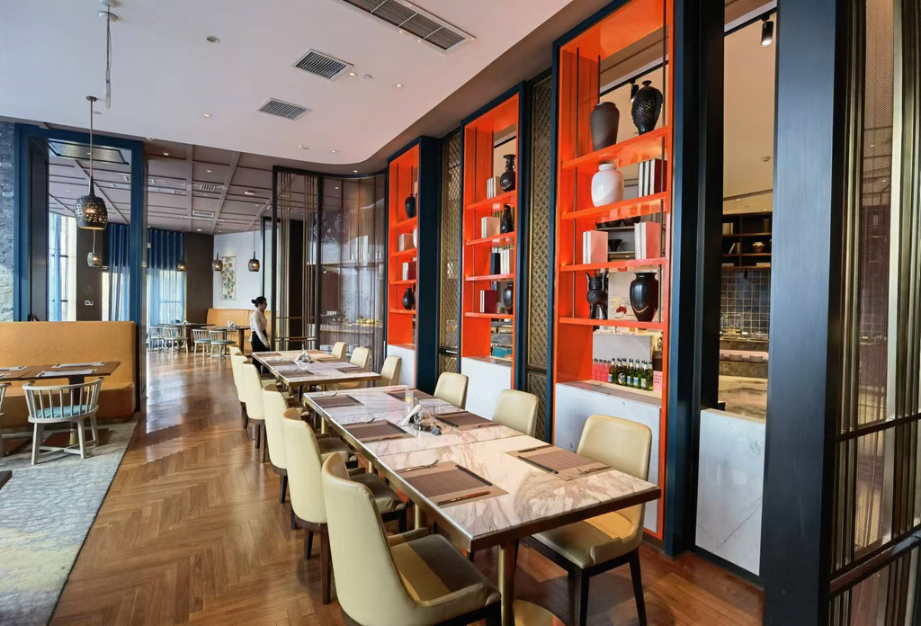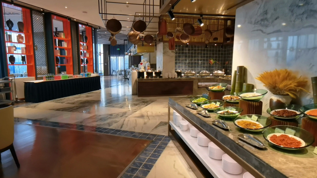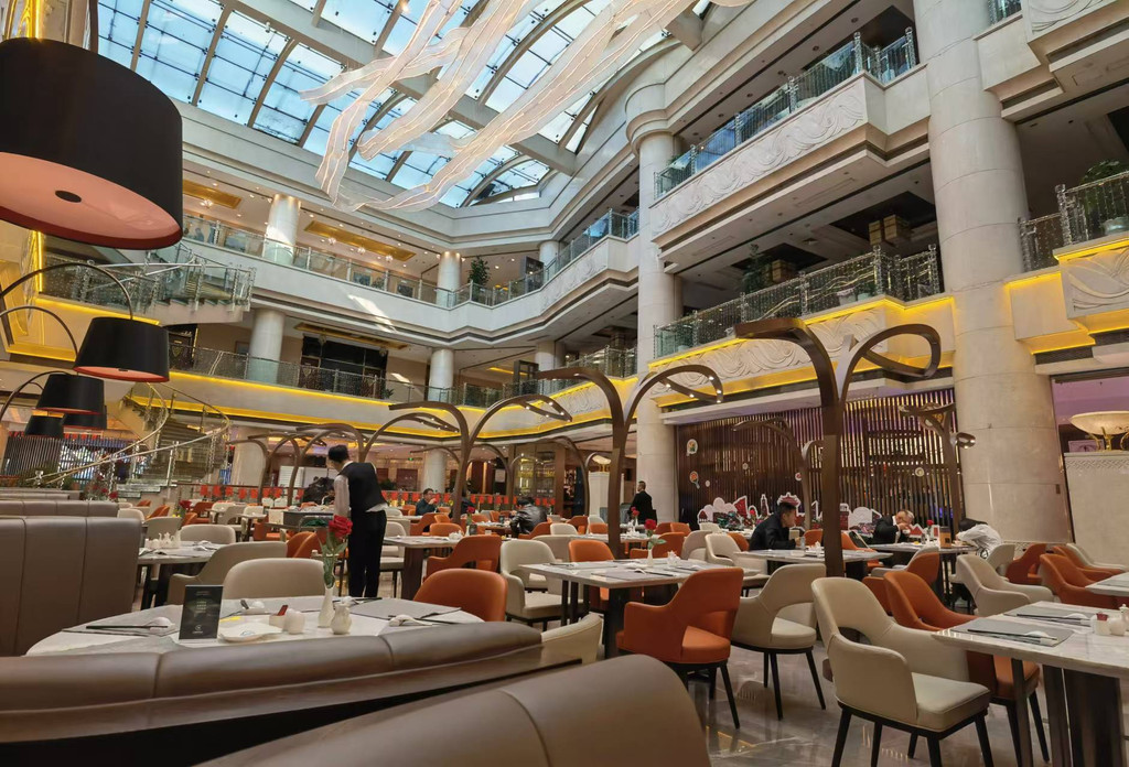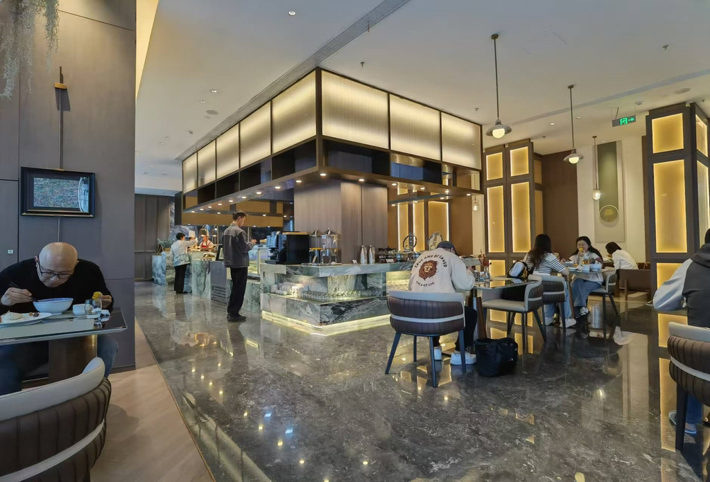 酒店早餐厅。上午9点半没啥客人,但服务很好。