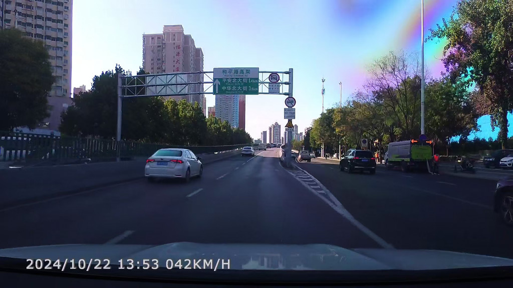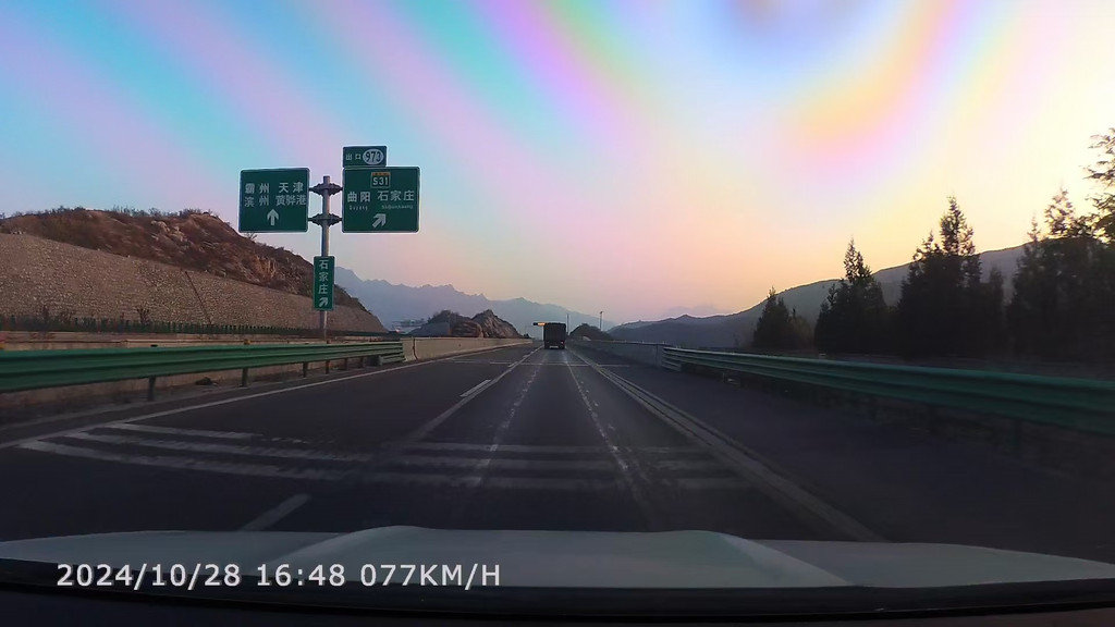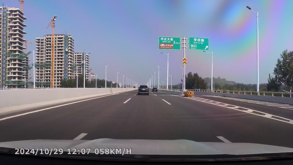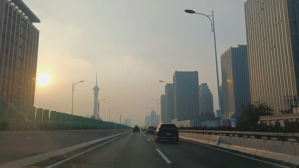 从高速口到石家庄市区,高架道路上行驶居多,不堵车。
