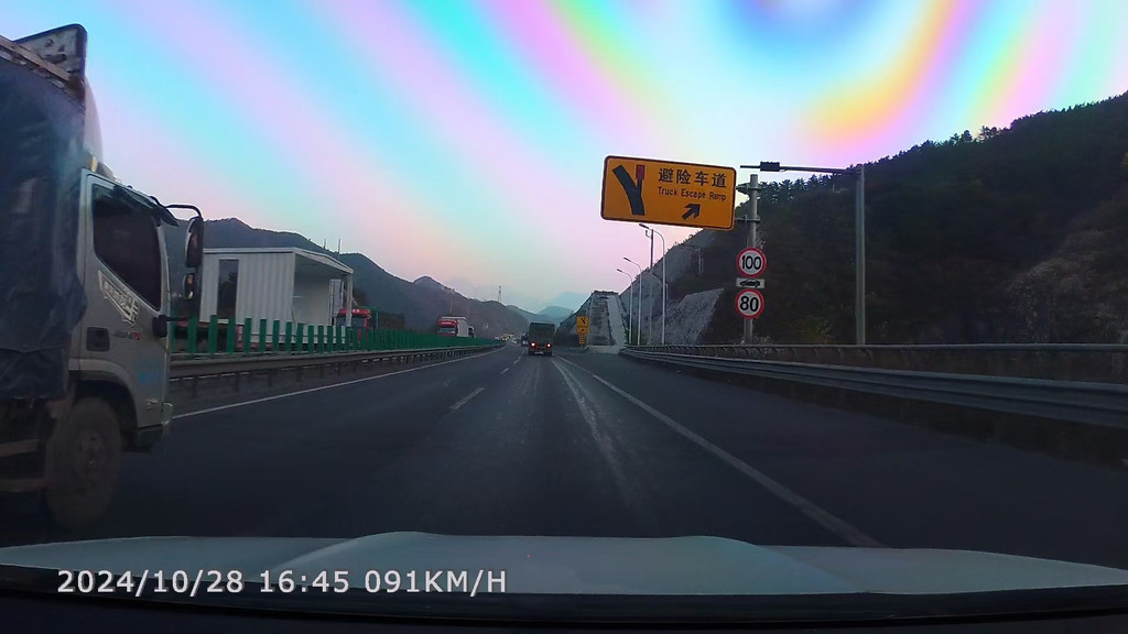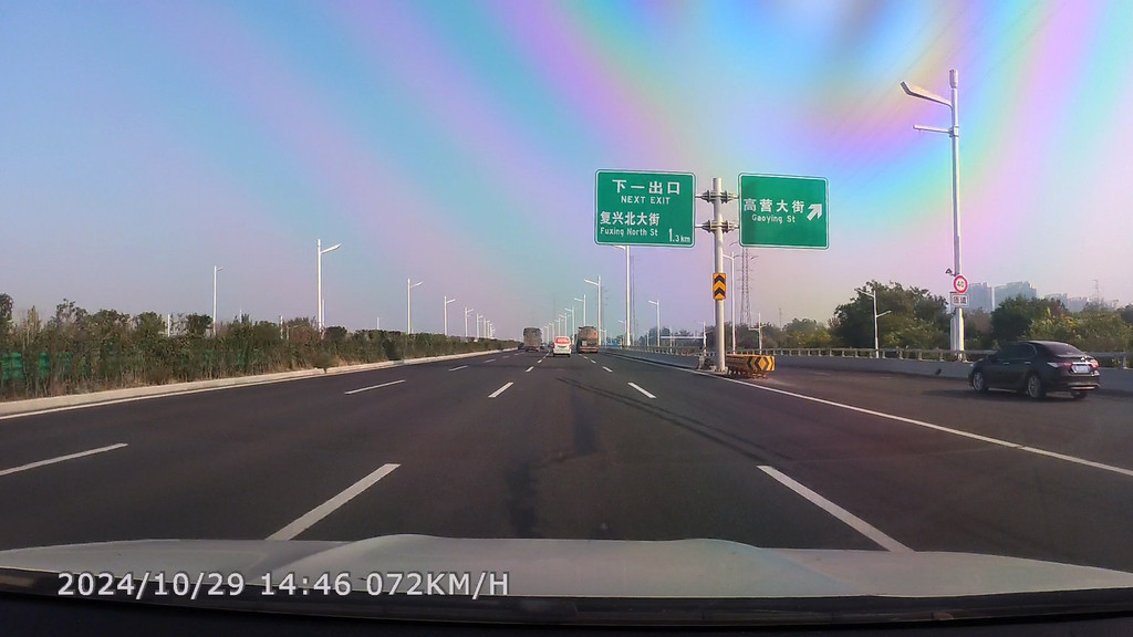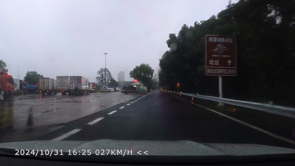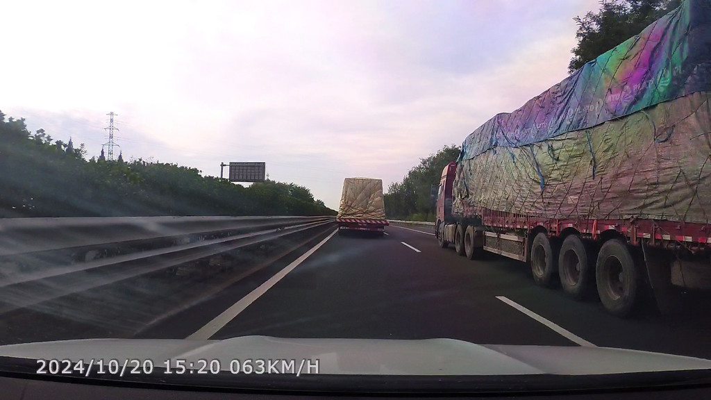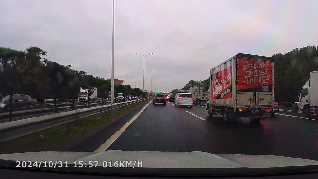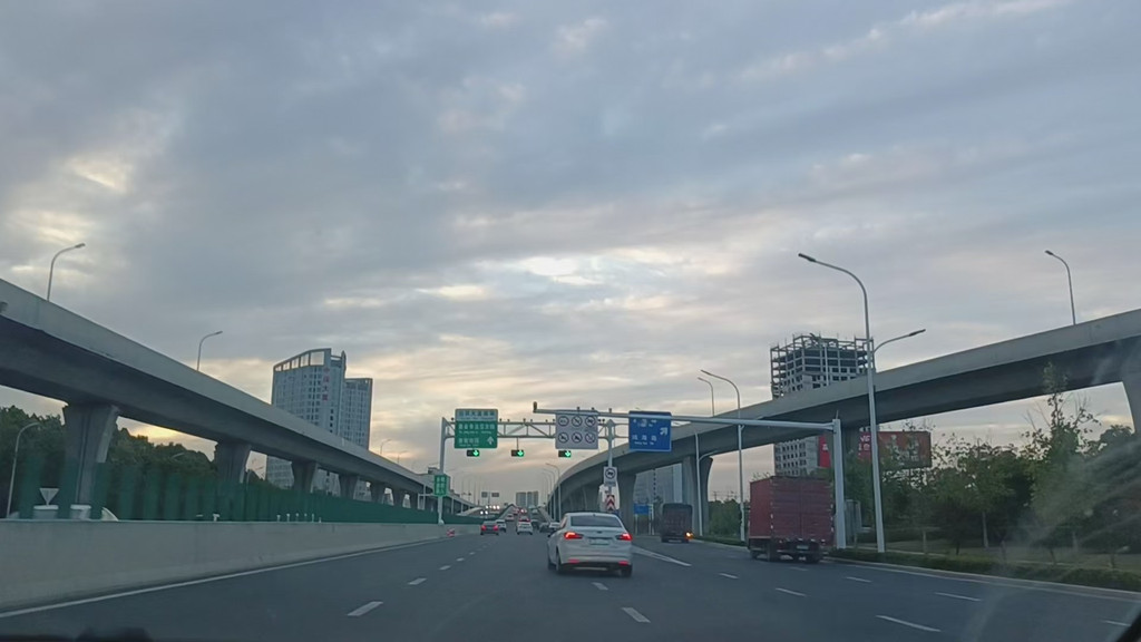 京沪高速上虽然大车多,但四车道行驶起来很爽的。