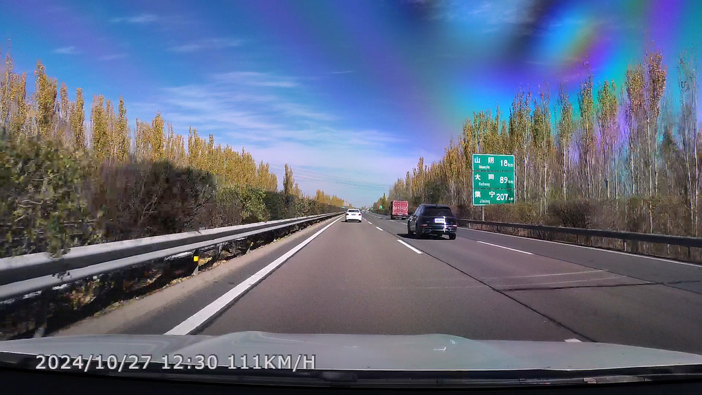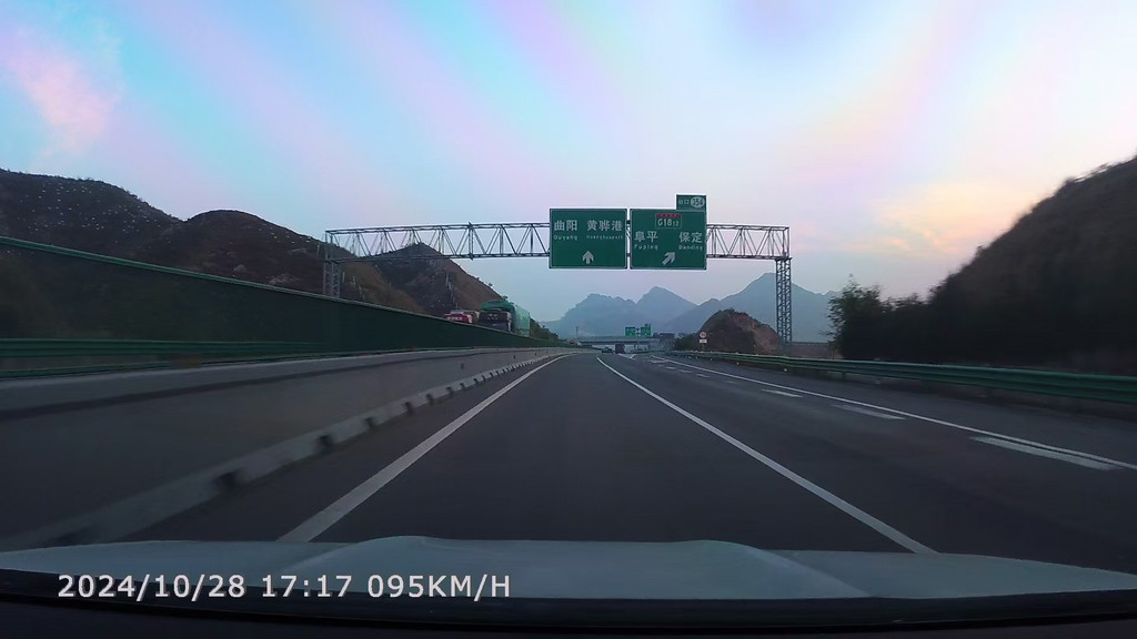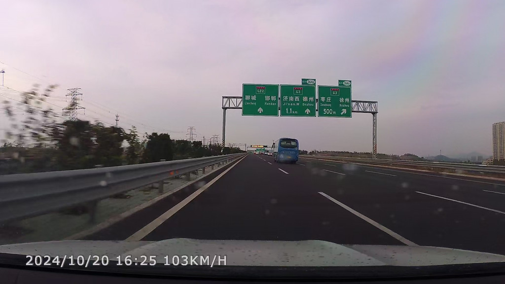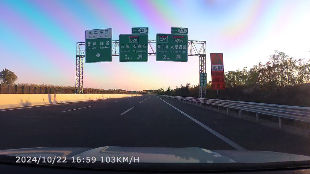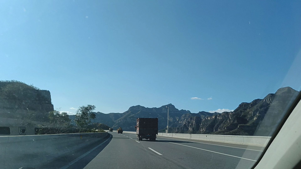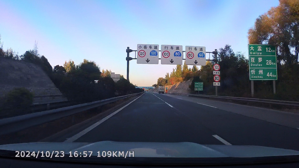 到山东新泰,往泰安方向,换到泰新高速上,单向两车道,经常因为避让大车而导致车速很慢。
