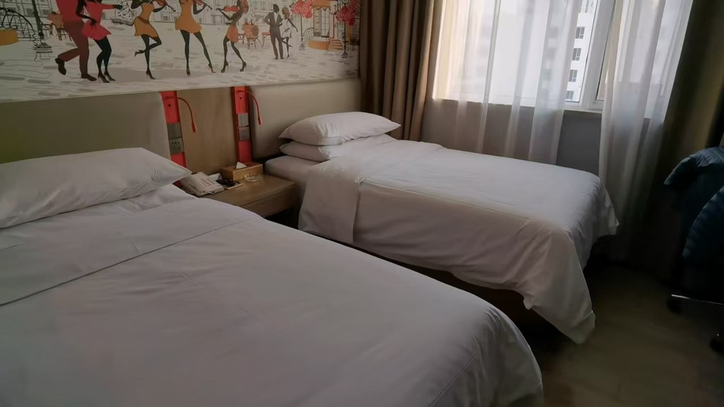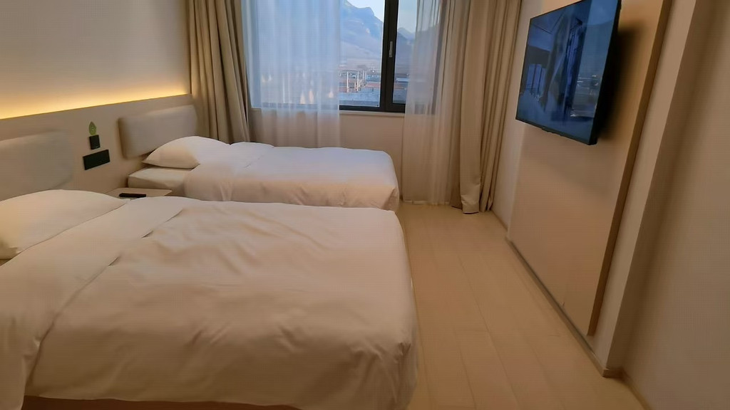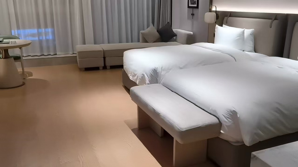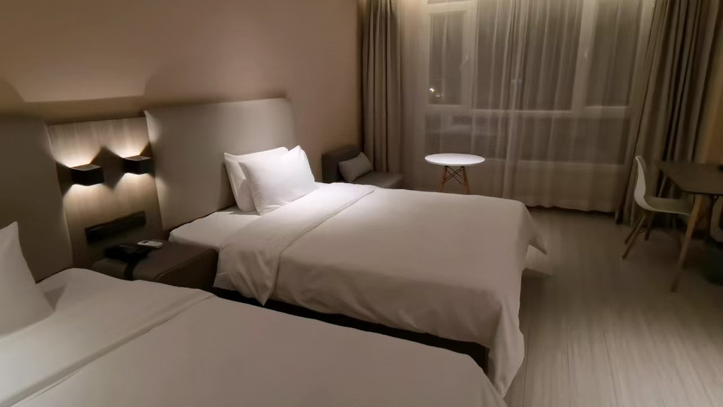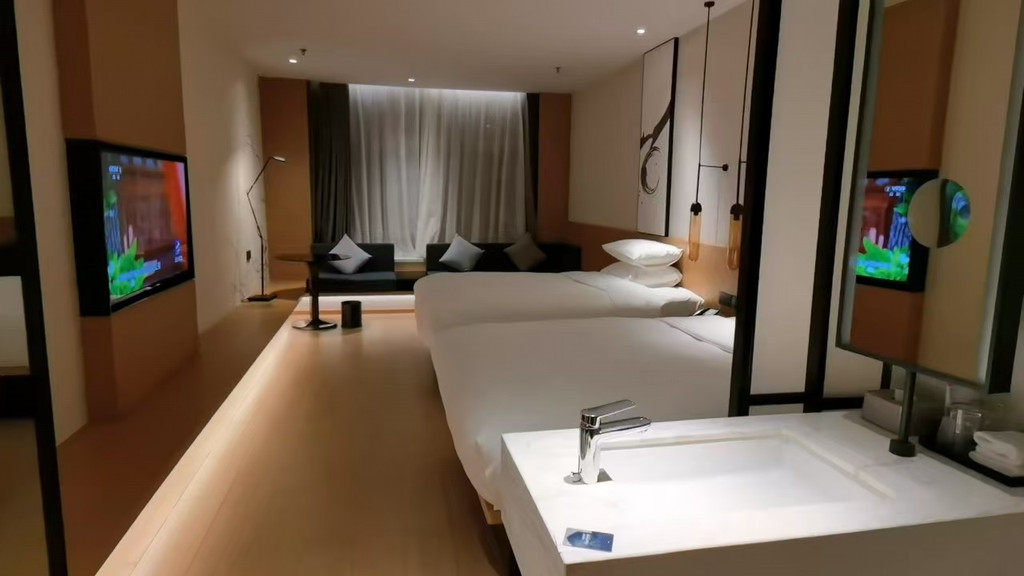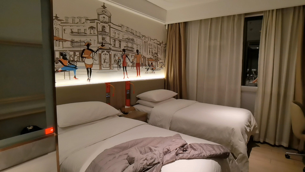 酒店前台给免费升级,实际入住的是豪华双床房,楼层更高,客房装饰更豪华。