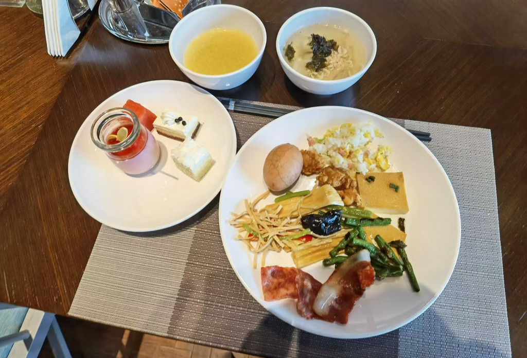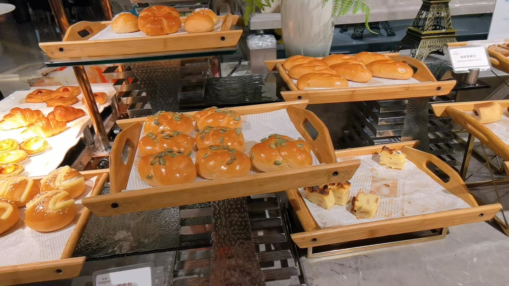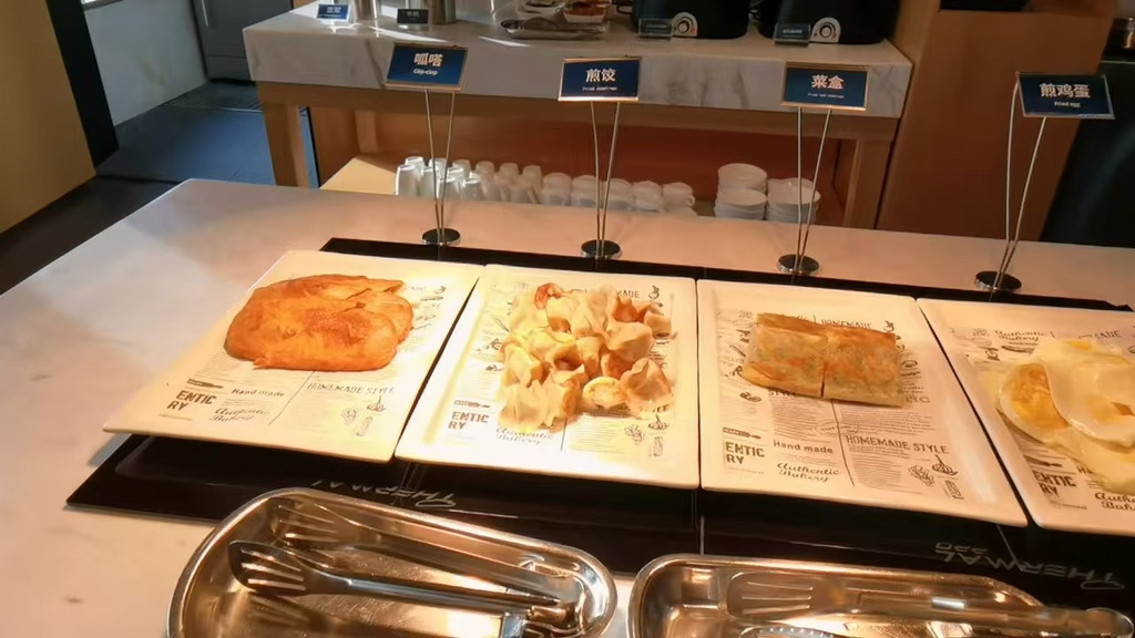 早上8点半去吃自助早餐,餐厅里只有我1位客人。万枫酒店的早餐比不上在淮安的温德姆花园酒店,但品种还是有不少,可以基本满足客人的需求。