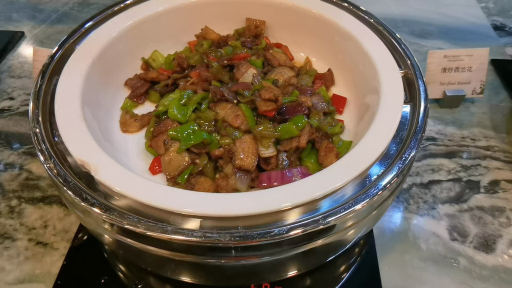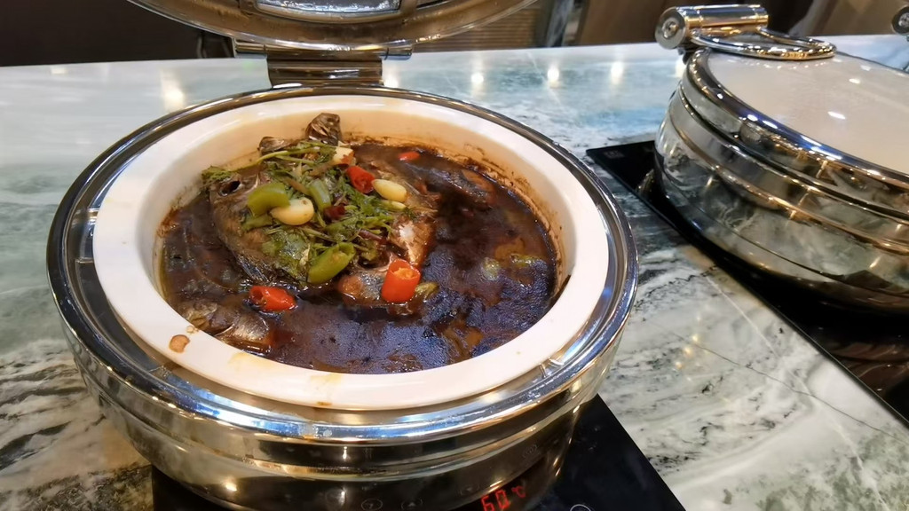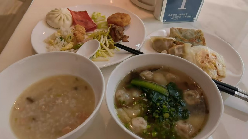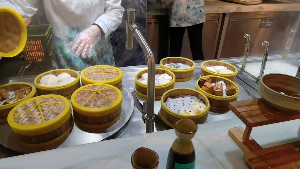 酒店早餐里挂了很多铁锅。济南章丘在历史上是有名的“铁匠之乡”,古有“章丘铁匠遍天下”之说,章丘铁锅很出名。