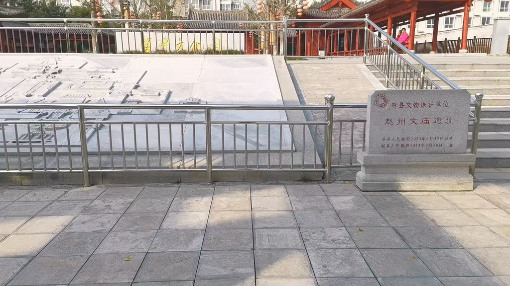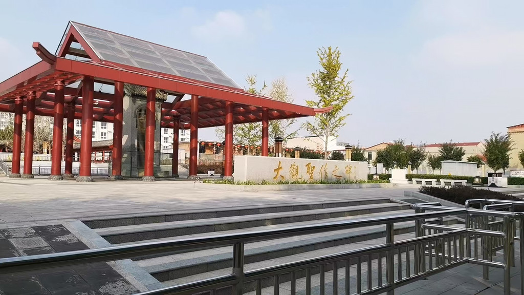 大观圣作之碑,原为赵州文庙遗物,此地为原赵州文庙遗址。赵州文庙遗址,始建于北宋徽宗大观二年(1108年)。该遗址现在是开放式的公园,与柏林禅寺在同一条街上,相距大概1公里多。