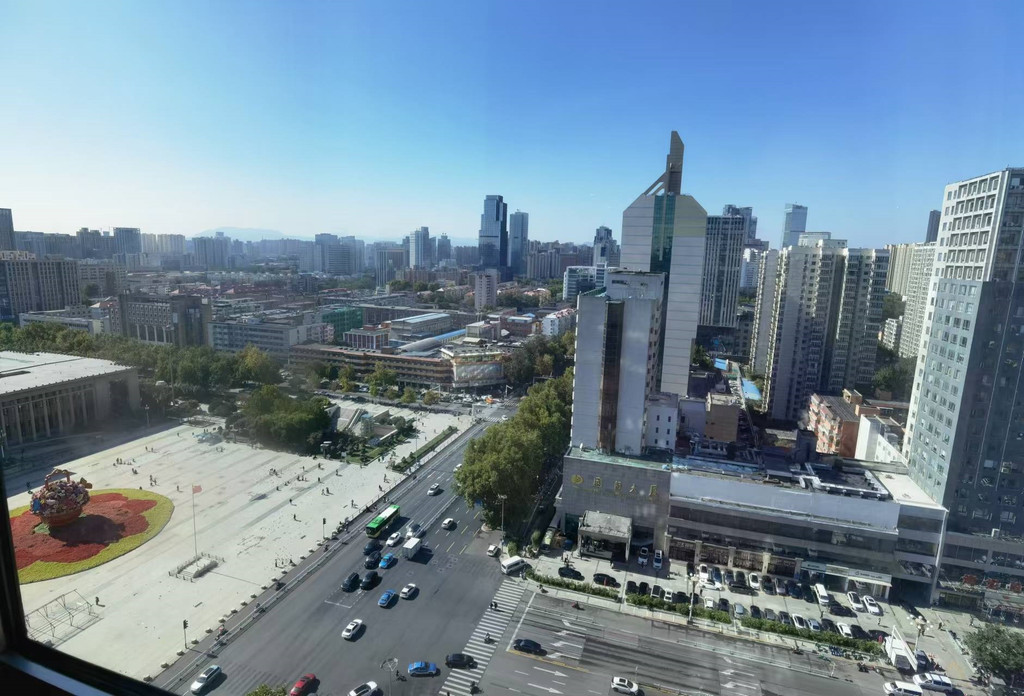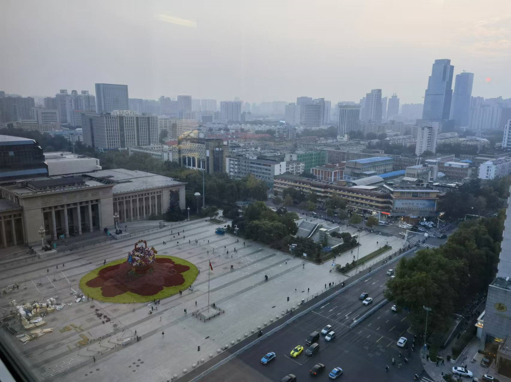 酒店窗外就可以看到河北博物院。我们选择这家酒店是因为参观河北博物院方便。它的街对面还有一家挂牌四星级的河北国际大厦。河北博物院门口的中山东路上有石家庄地铁1号线的博物院站。