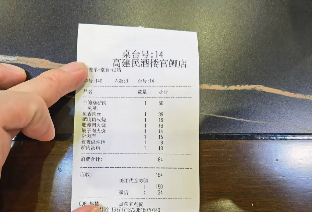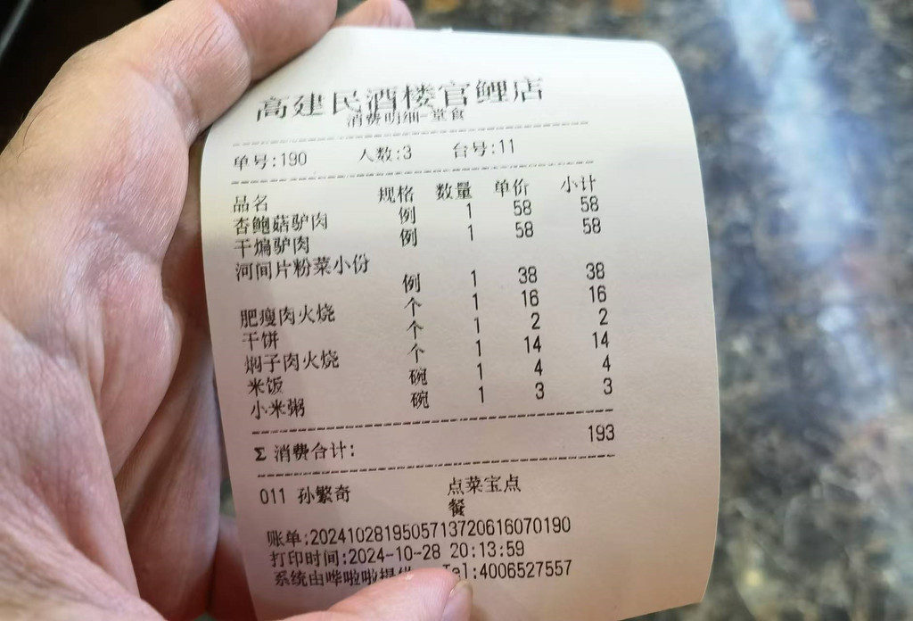晚上在酒店旁的高建民酒楼用餐,这是一家老字号,以驴肉火烧知名,在石家庄有多家门店。