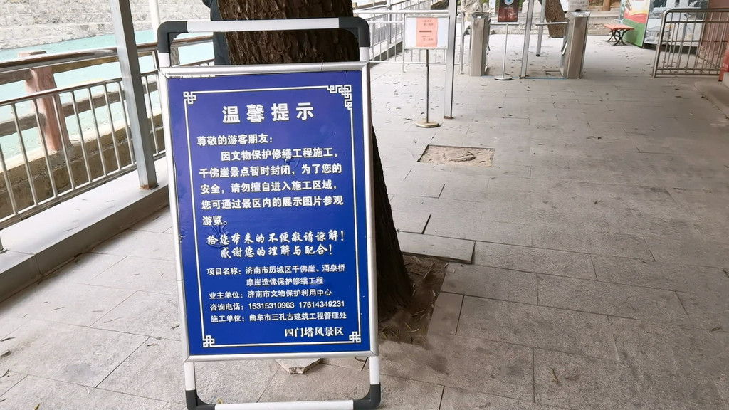 千佛崖造像是第三批全国重点文物保护单位,其中的龙虎塔在四门塔景区内,正在施工修缮。