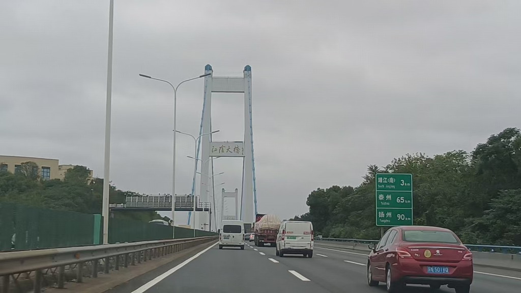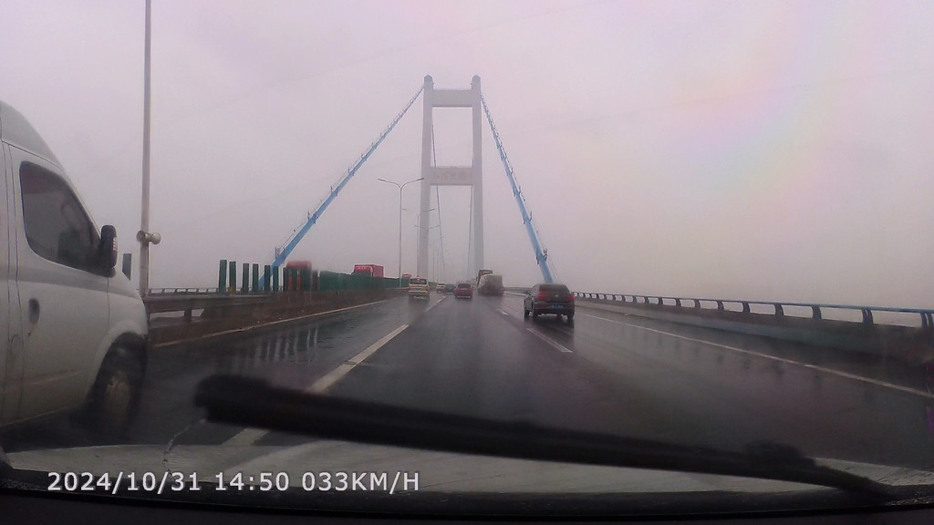 接近江阴大桥时开始下雨,台风“康妮”来袭。