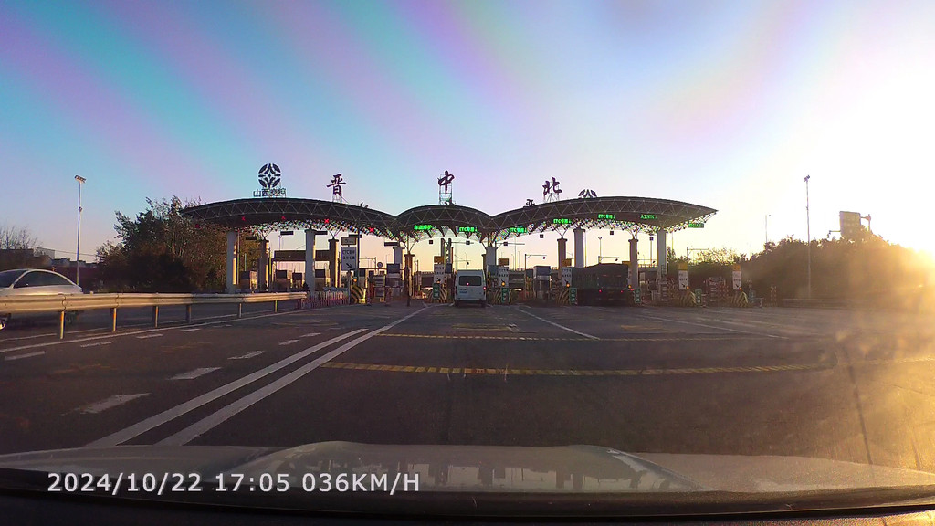 17点25分,抵青兰高速朱老庄收费站,累计行驶952公里,高速收费243.2元。