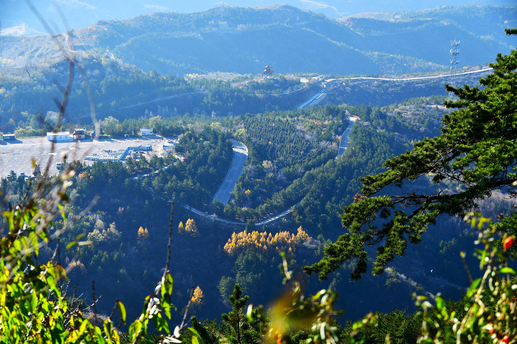 20241022,天气晴朗,一大早我们便搭乘景区交通车来到清水河畔的黛螺顶山脚。黛螺顶,原名叫青峰,创建于明代成化年间,明朝时期又称大螺顶,直到乾隆十五年间被改名为黛螺顶,一直延续到现在,是五台山历史悠久,闻名遐迩,别具一格的一座古刹。黛螺顶又称“小朝台”,是台怀寺庙中最高之处。黛螺顶所处的山峰,是五台山东台顶延伸过来的一座小山,海拔高度1938米。因台怀镇海拔1700米,黛螺顶的垂直高度只有不到300米。但站在清水河谷仰望,那坐落于高处与该山峰同名的黛螺顶古刹,相当于一幢130多层高的摩天大厦,要想登顶,绝非易事,通往黛螺顶有三个方案可以选择,1、可以骑马或步行,2、坐索道,3、登1080级台阶的“大智路”。因为索道停止使用,登1080级台阶太费体力,我们选择沿着马道步行,攀登起来没有那么费劲,我们边走边拍照边休息,用了一个多小时才到达黛螺顶。沿途一步一景,风光无限:阳光明媚,蓝蓝的天空、皑皑的台顶、金灿灿的树木、红墙金顶的寺庙。。。组成了一幅幅五台山初冬的美丽画卷,五台山真美呀!(门票8元,60岁以上免票)