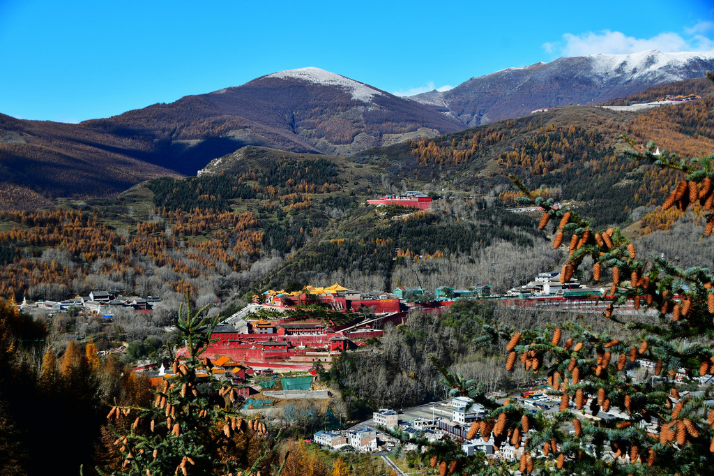 南山寺,北距台怀约2公里,依山势而建,海拔在1700米以上,共有殿堂窑房300余间,占地6公顷,规模很大,而且悬于陡峭山坡,更增添了宏伟气势。