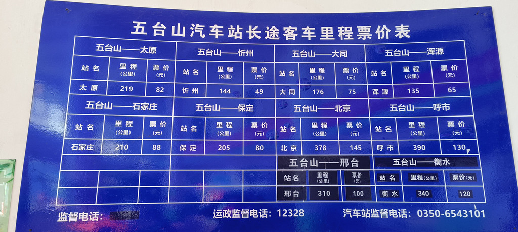 据天气预报,10月21日五台山是晴天,于是10月20日下午我们来到忻州客运站坐大巴去五台山,可因当时五台山正在下雪,大巴车停止运行。我们只好以每人100元的价格四人拼车去五台山。下午5点顺利入住五台山台怀镇鸿苑宾馆。