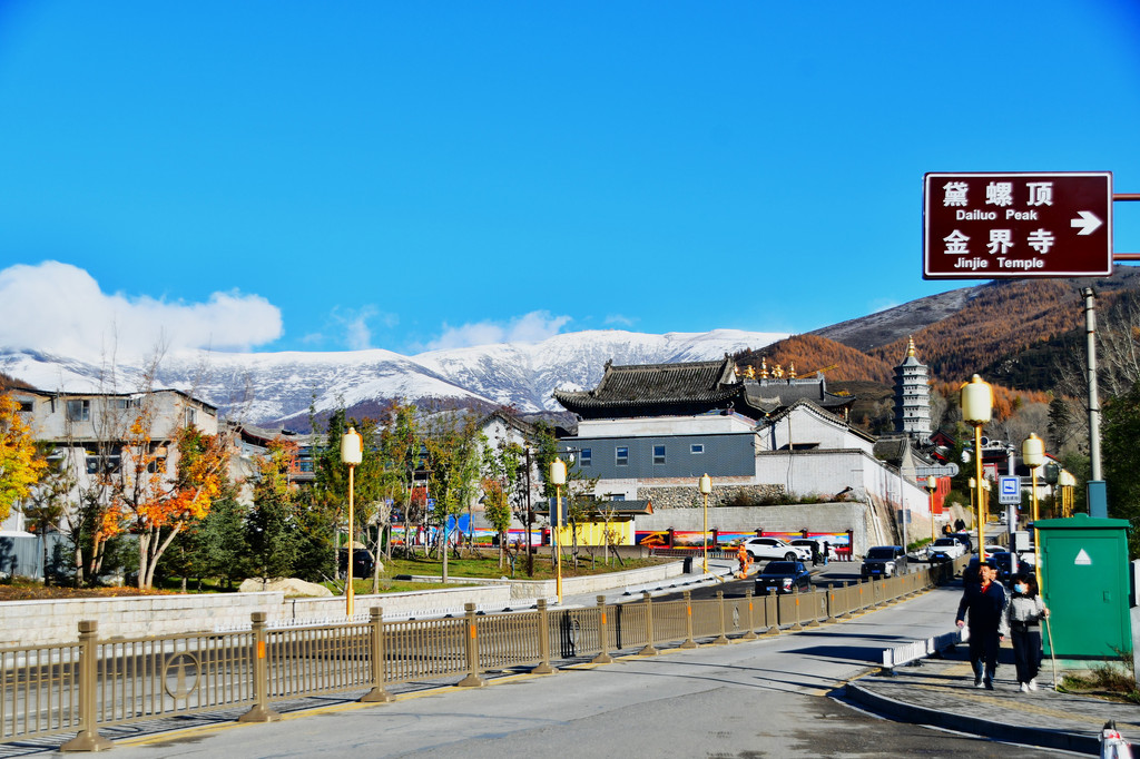 我们是10月20日下午到达五台山的,在五台山游玩了三天,23日下午才离开。初到五台山遇到了下雪天,可把我们这两个小老广乐坏了,皑皑的白雪映衬着古朴的台怀镇,银装素裹,于是,第二天早早起床,徒步2.1公里,一边赏雪景,一边上南山寺,抓紧时间拍雪景。可惜第二天太阳出来就把雪融化了,我们还没有玩够呀!