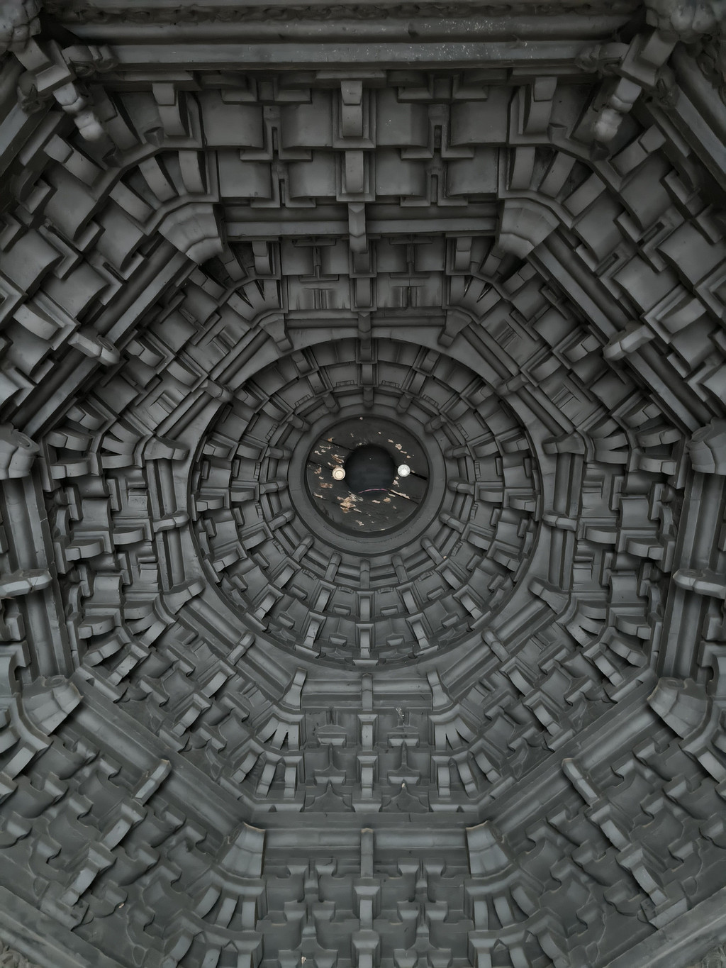 无量殿面阔七间,进深四间,从外面看是七间两层楼房,殿内却是三间穹窿顶砖窑,型制奇特,雕饰精细,宏伟壮观。殿四壁全用青砖砌就,殿顶用方木砌就。