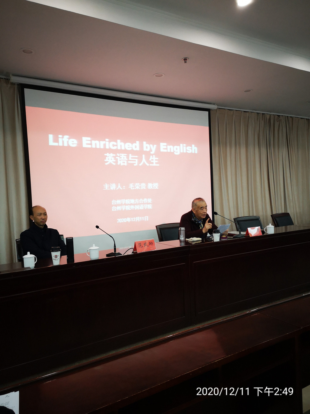 12月11日的赠书仪式后,我作了一个讲座,题目:Life Enriched by English。内容与上述书籍息息相关。