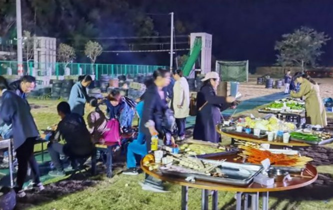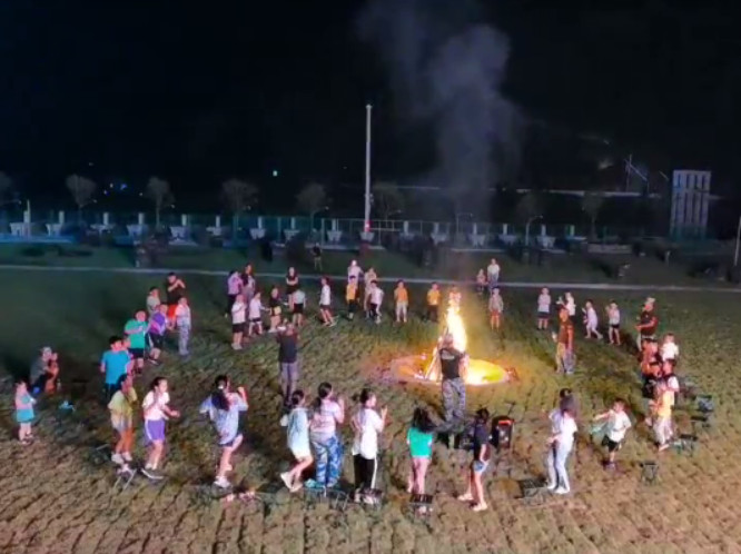 夜幕降临,五湖四海的人,一起唱歌,跳舞,享受着山海间的露天放映,美酒与故事相伴,篝火燃起,在星夜的映照下,话尽到天明。