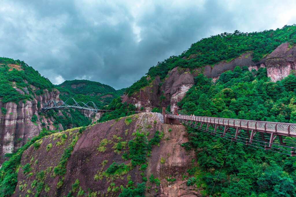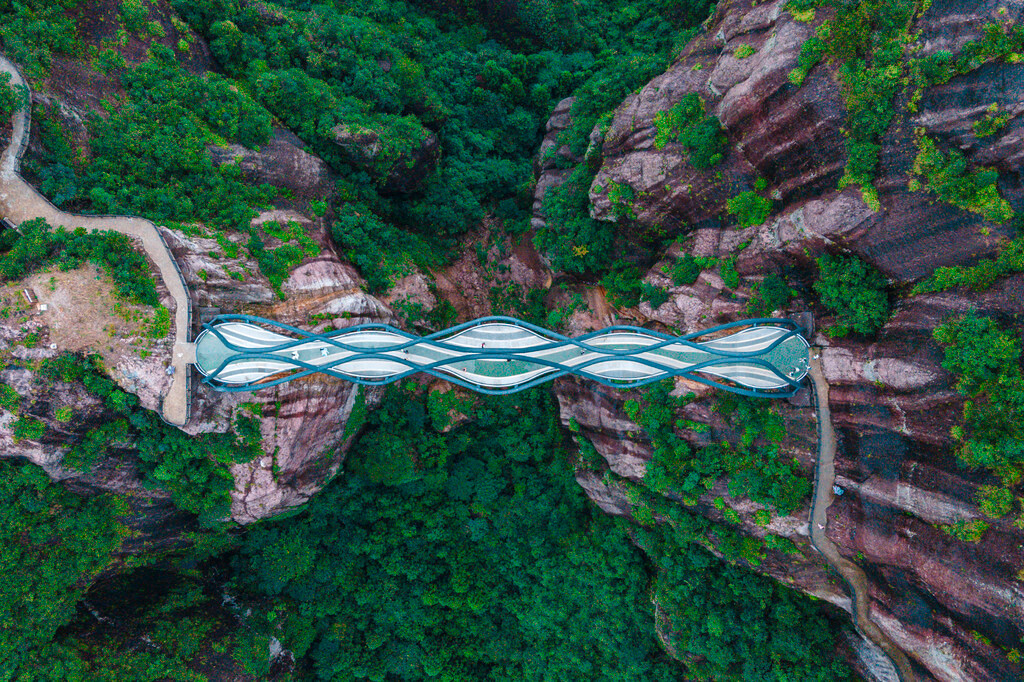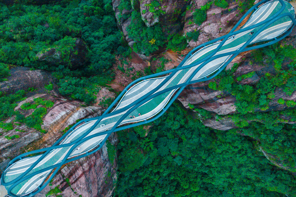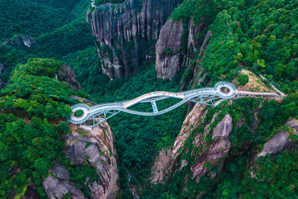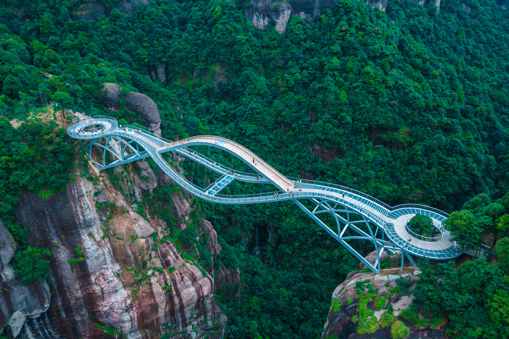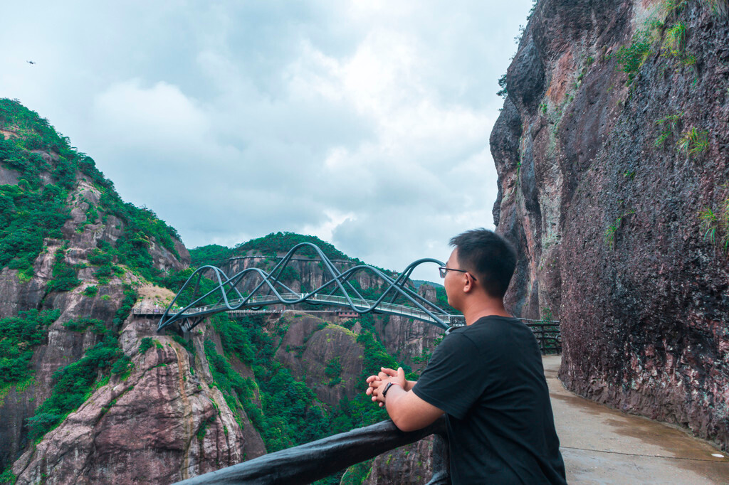 而且真的强烈建议来神仙居游玩的小伙伴们,如果有无人机一定要带上无人机,因为如意桥的景观真的太适合航拍了,由近到远,可以拍摄到自己,站在一个横跨山谷的玉如意上,再配上一些美好祝愿的文案,绝对能刷屏朋友圈。