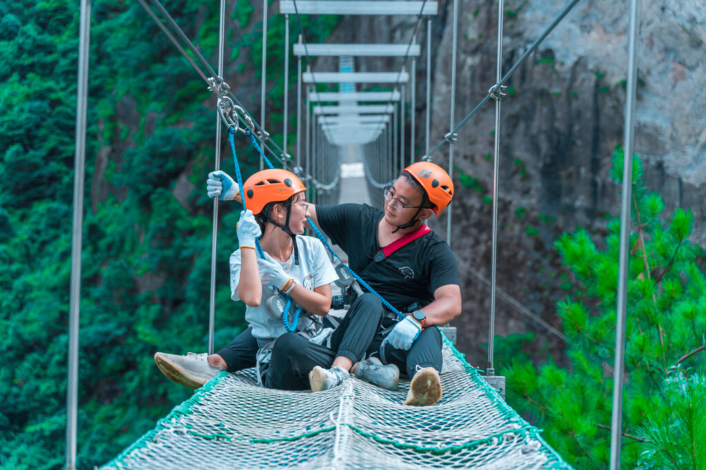 整个如意桥,长达130米,距离谷底170多米,桥中间处还有透明的玻璃道,可以说是一次上桥,多种风景,多种体验。