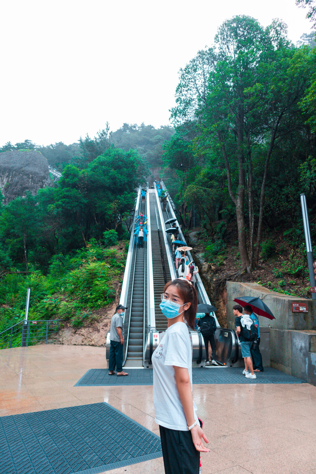 我们所走的路线是从南天门而上,然后反方向向北门游览,自南天索道而上,乘坐缆车穿越云层。如何感到阴雨天,穿过云层的那一刻,景色真的很震撼。