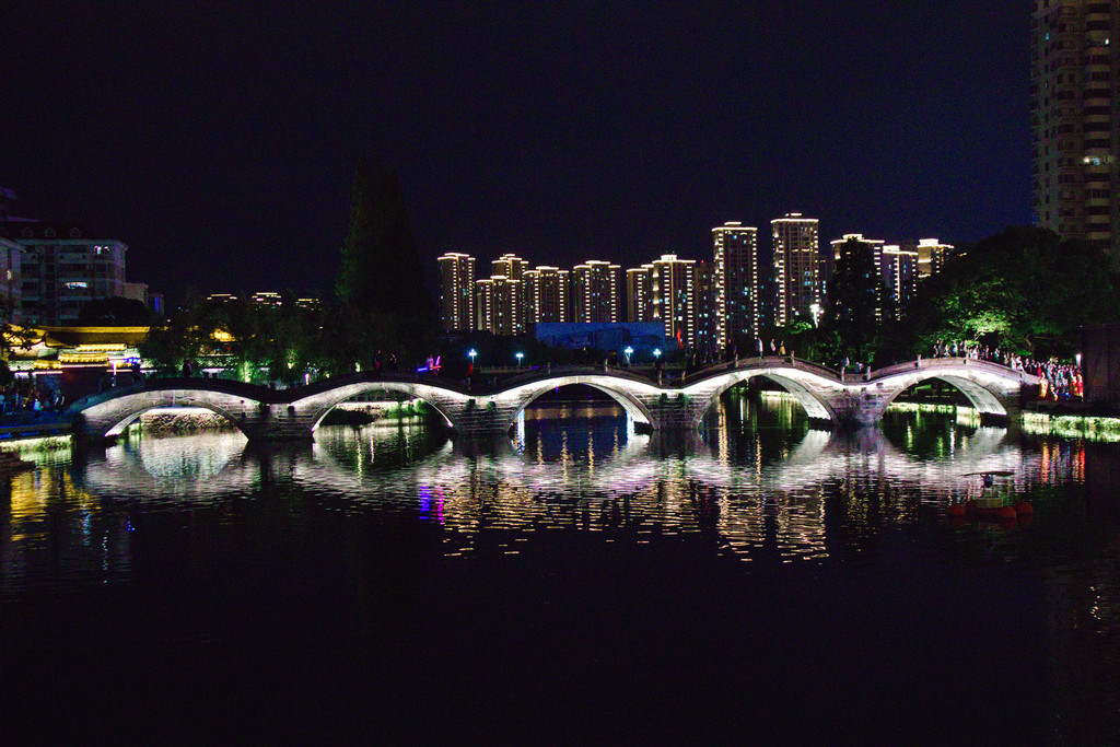 人们沿着官河古道的景点轮流打卡,或观赏书画景观和彩色喷泉,或搭乘水街特色的“官河六号”专线,在晚风的轻抚中感受漫游“千年官河”的乐趣。“感觉官河古道沿线的夜景很美,独具古韵的建筑造型、引人入胜的精彩演艺、美轮美奂的灯光亮化,还有杨柳微风的诗情画意,茶余饭后来这里吹吹晚风、听听音乐、看看表演、逛逛市集,真的很不错。”市民张凤说。