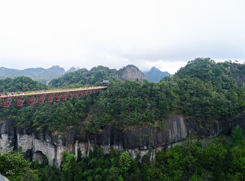 如意桥:横跨两山,造型像玉如意。从空中俯瞰,非常壮观。寓意吉祥,如意桥走一走,求个万事如意。