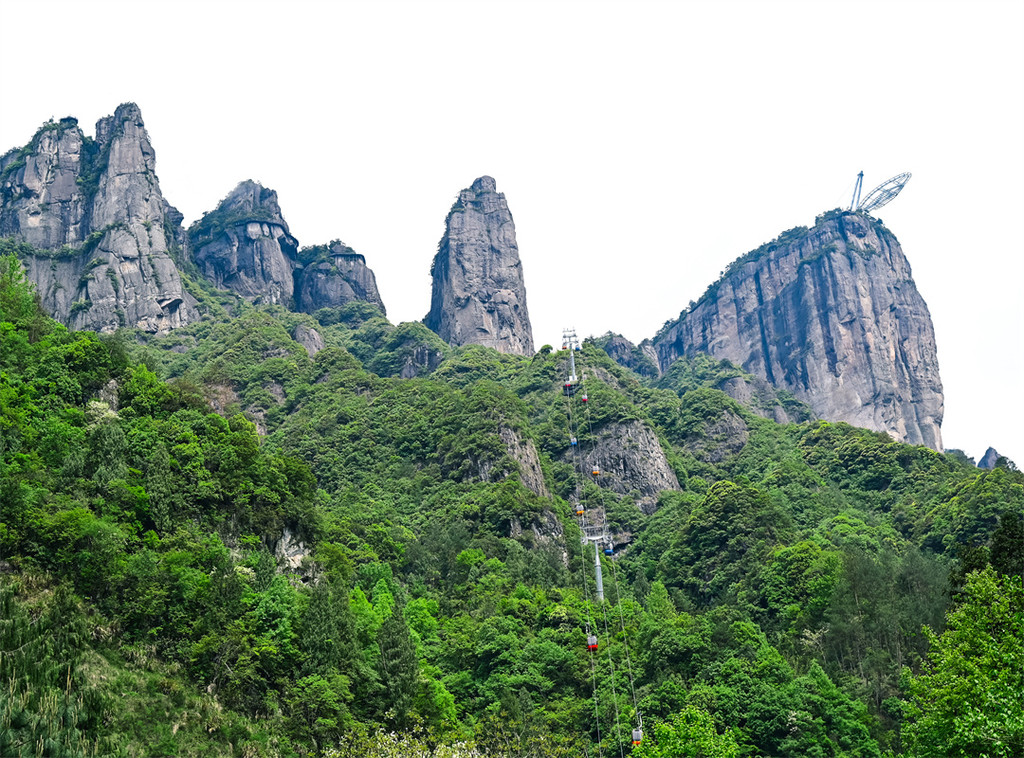 南门上,一路缆车,扶梯,去南天顶需走几段台阶,不是很累。沿途可以看见观yin峰,这是神仙居的标志性山峰,几乎任何角度都能看到。