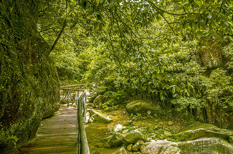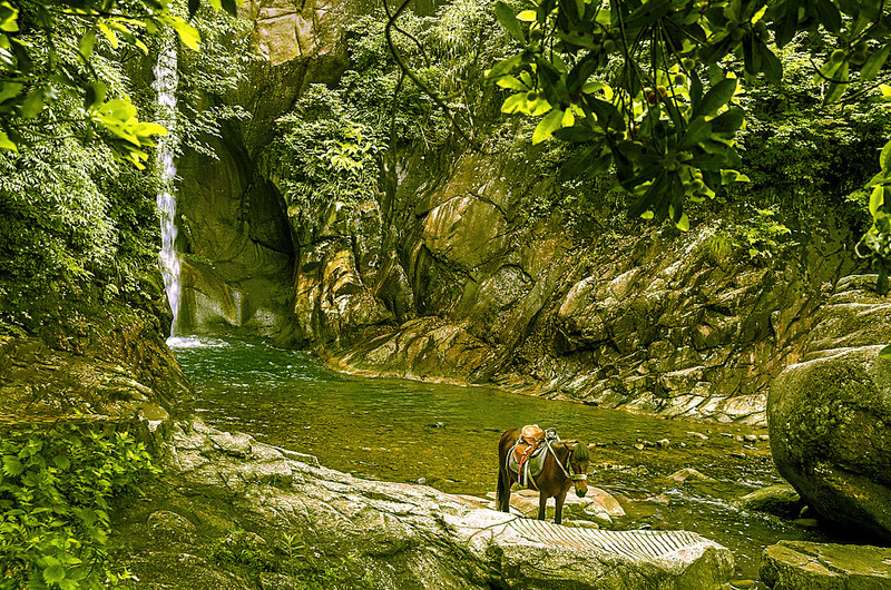 门票:60元/人公共交通:游客中心往返石梁景区:往返车票价格40元/人游客中心发往石梁,8:00—15:00,每30分钟一班。石梁发往游客中心,9:00—17:00,浙东“唐诗之路”的精华李白、孟浩然为此奇景发出赞叹“冰雪三千丈,风雷十二时”形容石梁飞瀑的壮观翠谷全长1800余米,最为著名的有“犀牛望月”、“老僧入定”、“千年睡狮”、“万年龟象”、原始木荷林、“应真沐浴潭”等等。顺溪上行,山峦滴翠古木参天,怪石遍布,奇峰突兀步移景异、触目皆成景铜壶瀑布巨石腹部膨大,口门狭小如同铜壶山间清泉从壶顶流下坠入翁内从形似壶嘴的岩隙中涌出如茶壶倒出的水流直注下面的碧潭内一泓如壶水喷洒,长年不竭中凸端垂,苔藓满缀其下奔泉跌入幽谷中氤氲磅礴,气象万千巧遇阳光斜照,虹霓明灭,斑斓多姿石梁飞瀑景区是中国第一部武打片《少林寺》及《少林俗家弟子》、《射雕英雄传》等许多影视片的主要拍摄地。漫步山间小路,抬眼望去,满目青翠不觉顿感心旷神怡石梁景区,以飞瀑著称,它拥有大小飞瀑10余处,其中著名的便有3处。随着山谷的深入,便走到了石梁最核心的景区,号称"天下第一奇观"的石梁飞瀑,抬头仰望在崇山翠谷之中,一石横跨天际,瀑布直泻碧泓潭,升腾的水汽如同霜,所以石梁飞瀑也有“石梁雪瀑”的美誉。坐在亭子,听听小溪细语在谷内行走,流水奔流而过溪水穿过乱石穿过层层密林缓缓流向山脚一方巨石大印卧于山涧中天然与人工巧妙结合石刻“法华晨光”,如印章般“法华”指佛教天台宗经典《妙法莲华经》,是大乘教义的集大成之作;“晨光”寓天台山最早沐浴大乘佛光,是天台宗的祖山。沿路溪水清澈碧绿树叶倒映在山涧之中细品慢赏一路风景时光缓慢而悠长一切静似太古宠辱皆忘,心中纤尘不染未到古寺已听到瀑布的轰鸣之声势若雷霆徐霞客像。这位中国历史上著名的旅行家,和天台山的关连十分密切。天台山不仅是《徐霞客游记》的开篇地,他本人更是三次探访石梁飞瀑。并且留下重要著作。石梁下游,仙筏桥畔徐霞客已化身一座雕像“停足仙筏桥,观石梁卧虹飞瀑喷雪,几不欲卧”一代旅人跋山涉水三上台山、六观石梁一片痴情,传为佳话瀑布入潭,飞波若舞,散沫似珠一座古老石拱桥,名叫“仙筏桥”立在桥上,石梁飞 瀑全景尽在眼中深山碧水流夹岸竹林苍翠碧潭飞瀑山清水秀迭串而成错落有致有石如梁飞跨两石高挂青山翠谷间流水穿石而过,飞奔直下山谷间,回荡着瀑布的轰鸣声天然石梁,横架于高空两石壁之间,巧夺天工金溪和大兴坑两条溪水左右而来,汇合于此瀑布三折,穿梁飞流直下极尽雄伟奇丽之致聚集成一个巨大的雪浪团激起一阵雪白的水花坠入几十丈深的幽谷之中一石横空,横跨在两崖之间急流从梁下峭壁上呼啸而下溪涧岩石坎坷不平水流层层折跌色如霜雪,势若奔雷“潭底怒雷生雨雹,松头飞雾湿衣巾”竹树秀蔚,风景清幽瀑声山色中,仰观石梁,如在天上巨大的石梁,高挂入云罕见“天生桥” 横跨在两崖飞瀑奔腾,泛起乳白色的薄雾犹如水墨晕染,隐约可见一湾青碧如玉的深潭倒映蓝天白云、群山天生桥是中间拱起的石梁,长二丈左右,横跨在两崖之间。金溪和大兴坑两条溪水汇合于此,水流自石梁下穿过,坠入几十丈深的幽谷之中,发出震耳欲聋的声音。站在瀑布前的巨石上瀑布之水洒落在身上阵阵凉风,体会瀑布的气魄来到巨大的瀑布面前古寺与石梁、飞瀑融为一体飞流直下三千尺的意境景区最经典的画面石梁飞瀑旁有中方广寺,寺内昙花亭,原系南宋丞相贾似道所建。瀑底左侧为下方广寺,茂林修竹,掩映其间,相传为五百罗汉应真之所,现寺内供有五百罗汉木雕像。头枕着石梁,怀抱着飞瀑古寺钟鸣,盈泉飞瀑听禅意瀑布上方,中方广寺清静的黄色寺庙顺着山势而建掩映在绿色的古木之中将谷中山水点染得恰到好处金溪和大兴坑溪的交汇之处才有了石梁的飞瀑如今已秋色满满天台之瀑不奇在瀑,而在石那微微拱起的梁面像一条巨蟒匍伏或是苍龙耸脊米芾所题“第一奇观”四字石刻康有为的“石梁飞瀑”题刻刘璈题的“前度又来”当年徐霞客从石梁俯视百丈深渊“余从梁上行,下瞰深渊,毛骨俱悚。”步上徐霞客观瀑处的观瀑亭,眼前豁然开朗,一瀑三折从天而降,徐霞客曾驻足于仙筏桥上望石梁飞瀑,他说:“停足仙筏桥,观石梁卧龙,飞瀑喷雪,几不欲归。”崇山翠谷之中一石横跨天际瀑布喷涌而下仁乐水智乐山“龙楼凤阙不肯住,飞腾之欲天台去”一石横空出世飞瀑九天抖落瀑以梁奇,梁以瀑险水气氤氲,奇妙结合千年古刹古朴巍峨石梁飞瀑声振林木一边是高古清寂一边是滴水穿石一边是飞檐翘角、黄墙黛瓦一边是色如霜雪,云涌涛激一边是佛宗道源,幽幽禅境一边是山水神秀,自然奇绝下方广寺是“五百罗汉应真宝地”,保存着东晋时期楠木雕刻、国内历史最悠久的镀金五百罗汉像,弥足珍贵。瀑底左侧的古下方广寺茂林修竹,掩映其间佛教五百罗汉应真之所旅游攻略导航