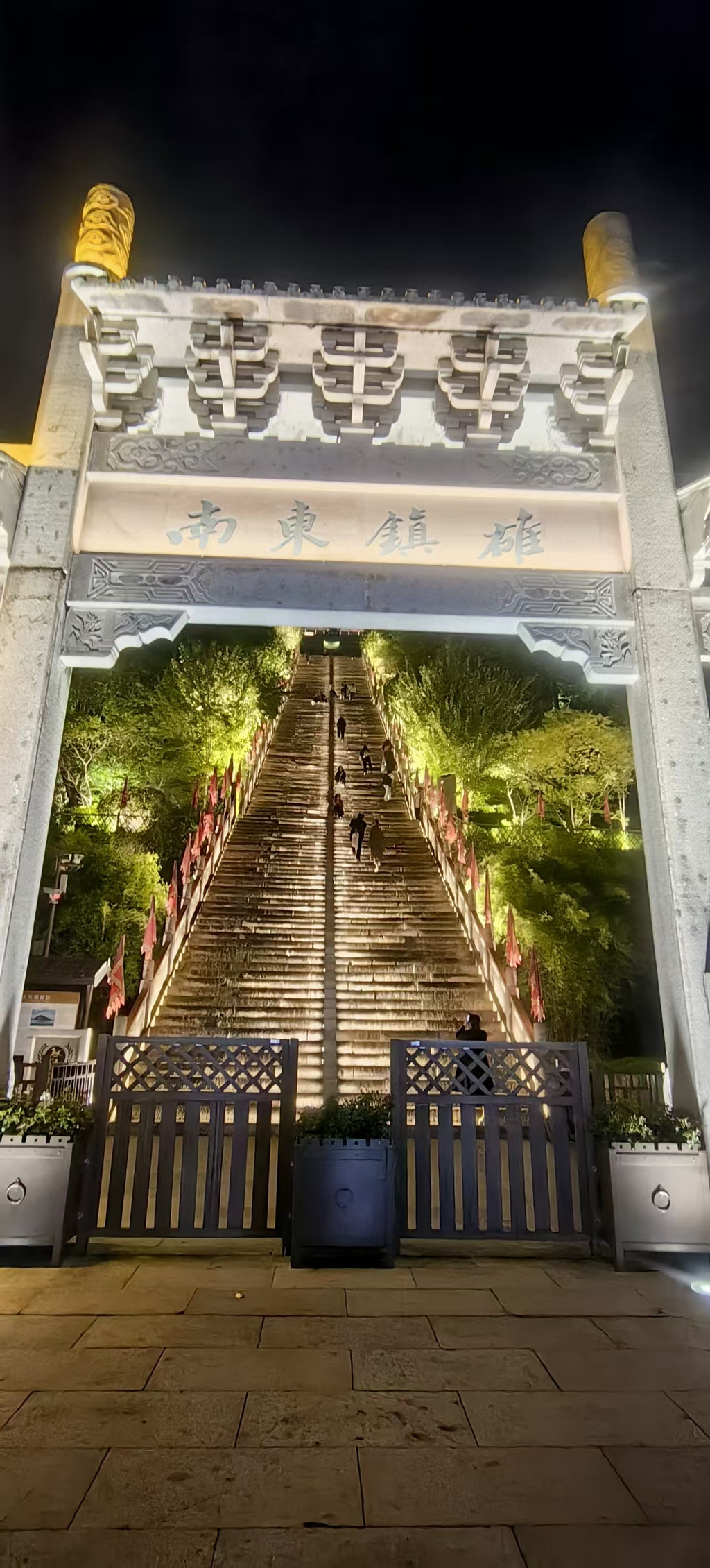 晚餐后夜游东湖,仰望明天要征服的198级台阶的好汉坡,灯光非常秀丽